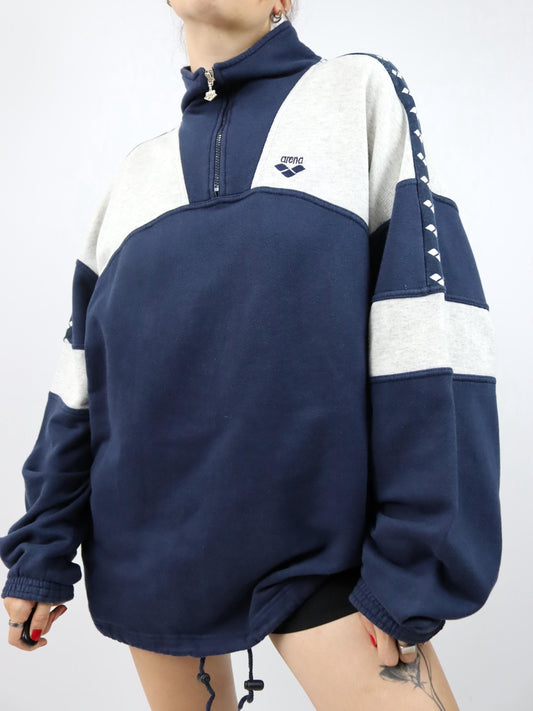 Vintage 80er 90er ARENA Sweatshirt Pullover Stehkragen dunkelblau grau XL