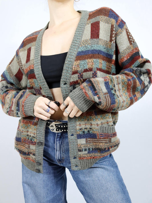 Vintage 80er 90er SETTEBELLO Wollcardigan Strickjacke mintgrün L