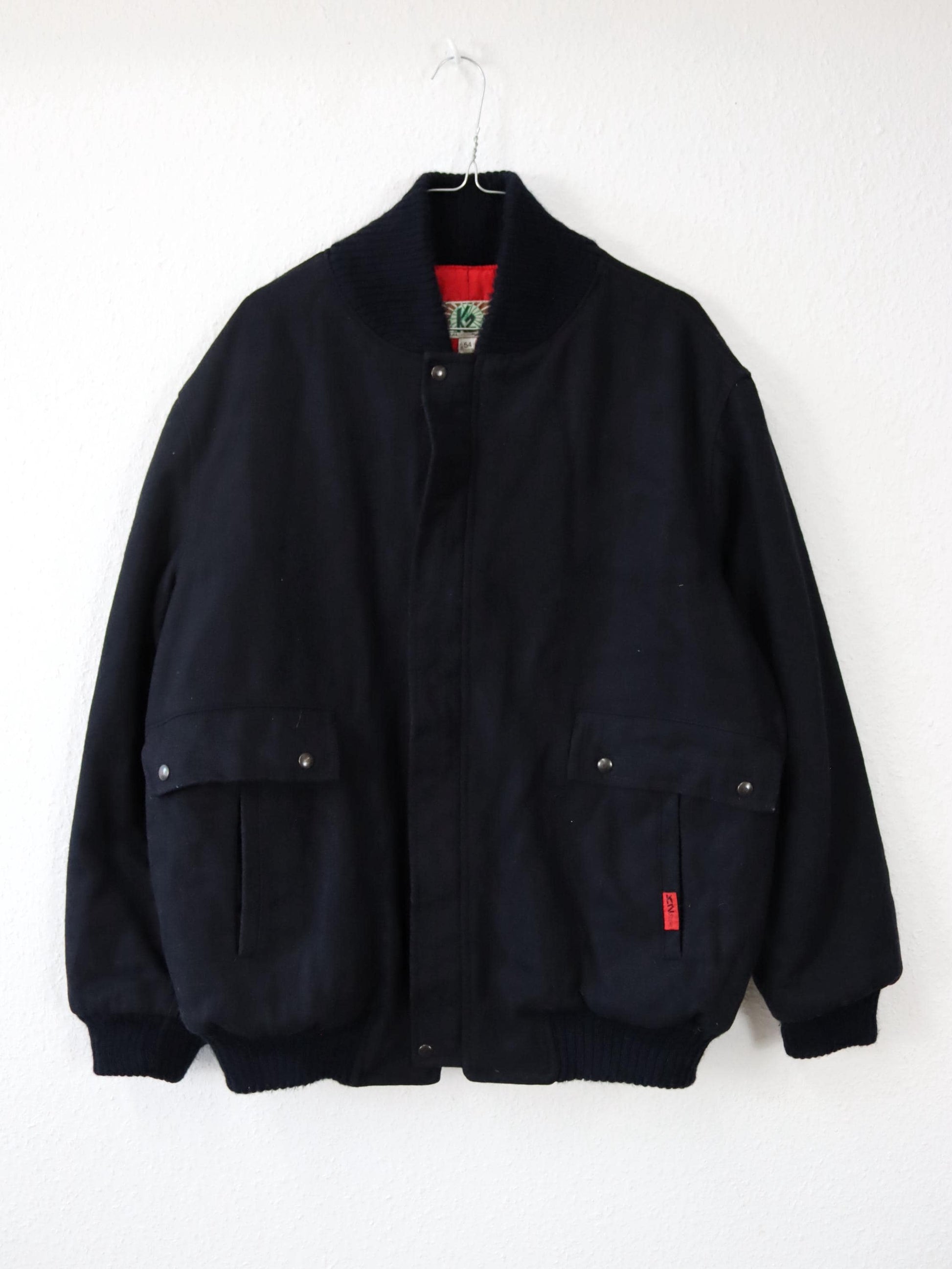 Vintage 70s 80s K2 wool bomber jacket, black/red, size 54 (XL)