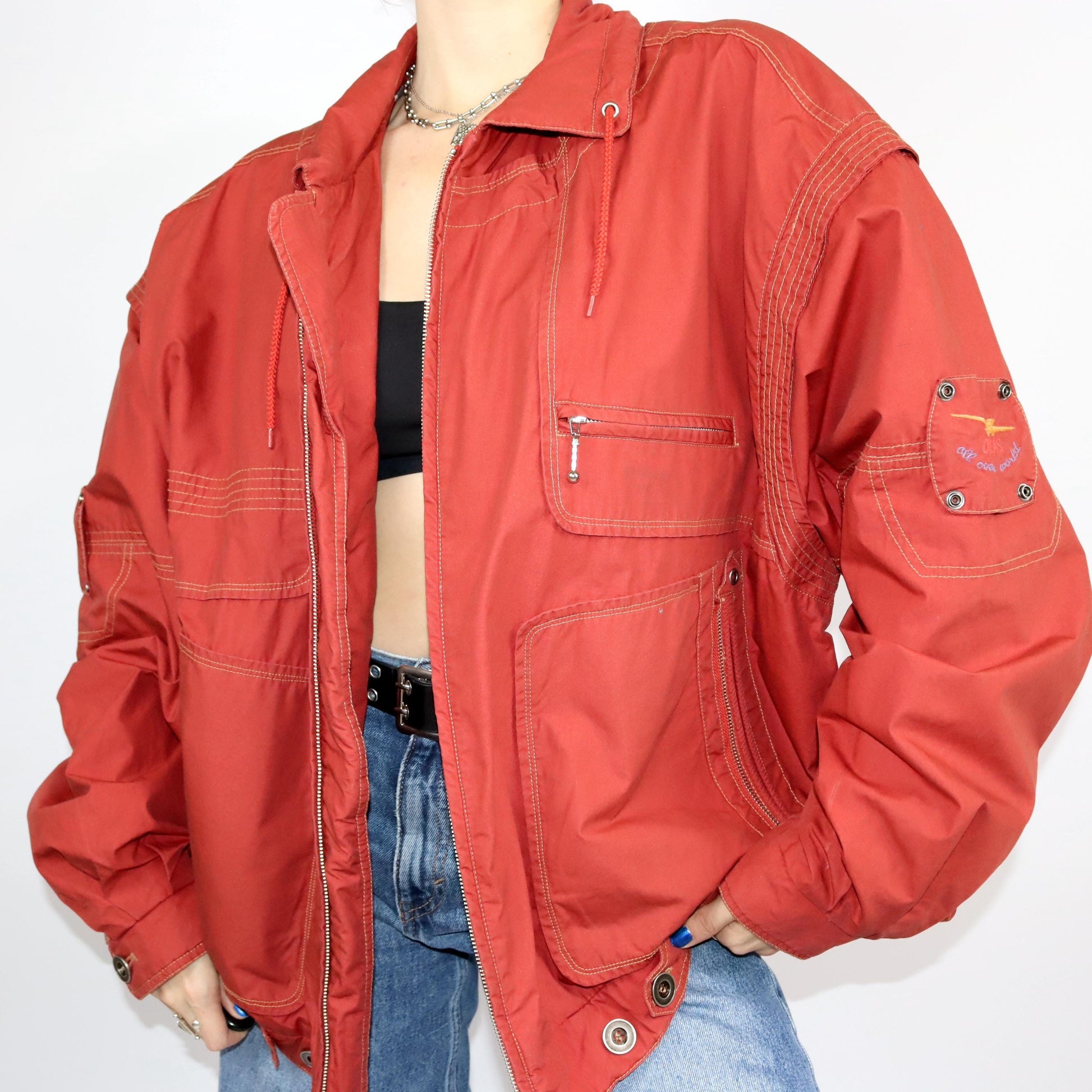 Vintage 80s 90s AVANTI jacket windbreaker transition jacket stand-up collar red XL
