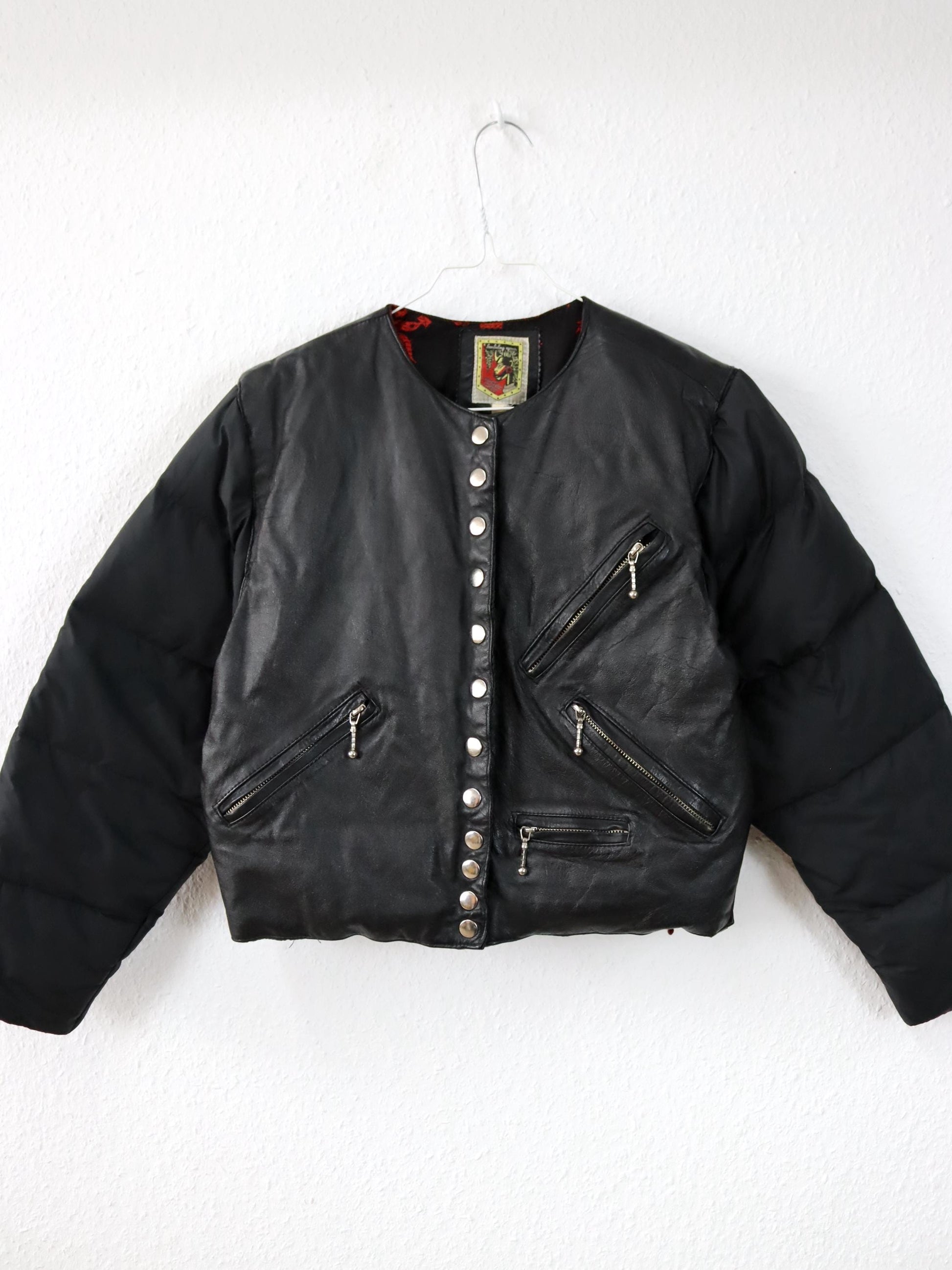 Vintage 80s 90s CASAMANCE EXPRESS puffer jacket down leather jacket black lined S