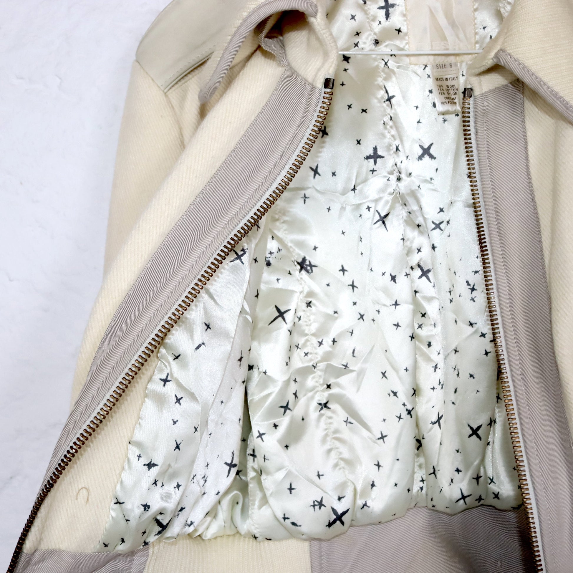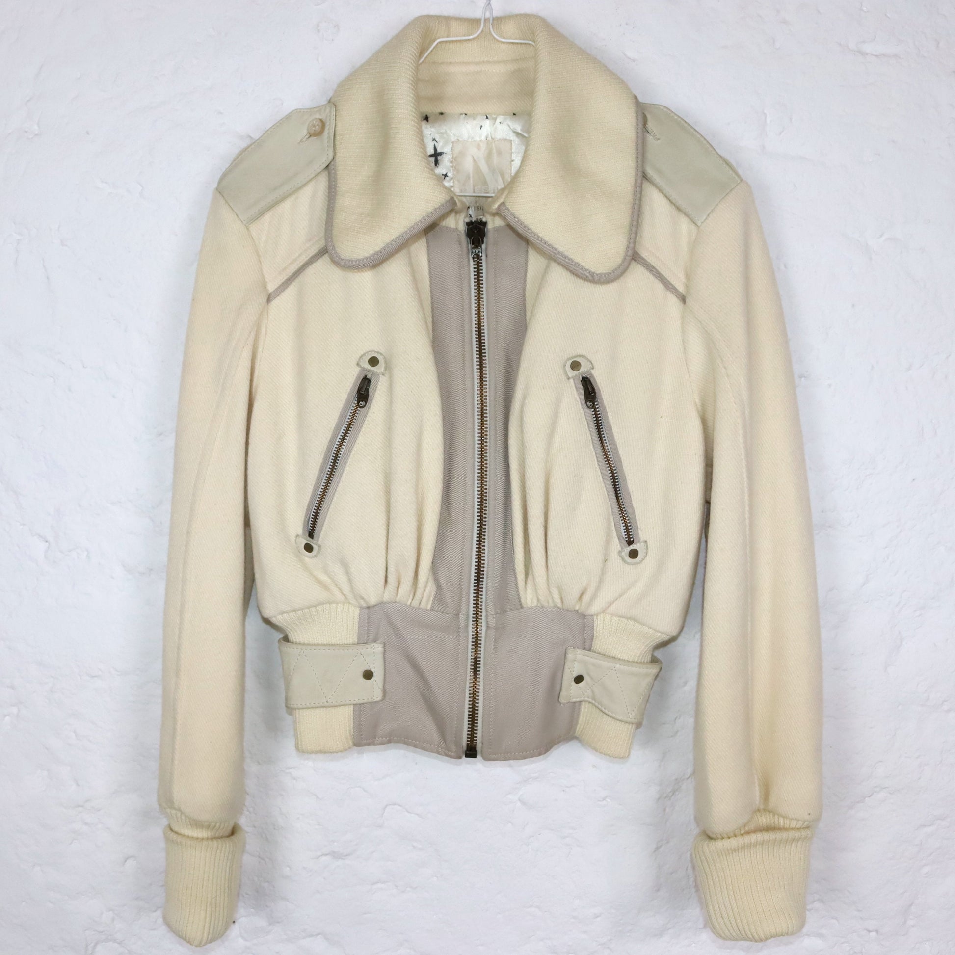 Vintage 80s 90s DIESEL Premium wool jacket jacket wool leather cream white tailored point collar S