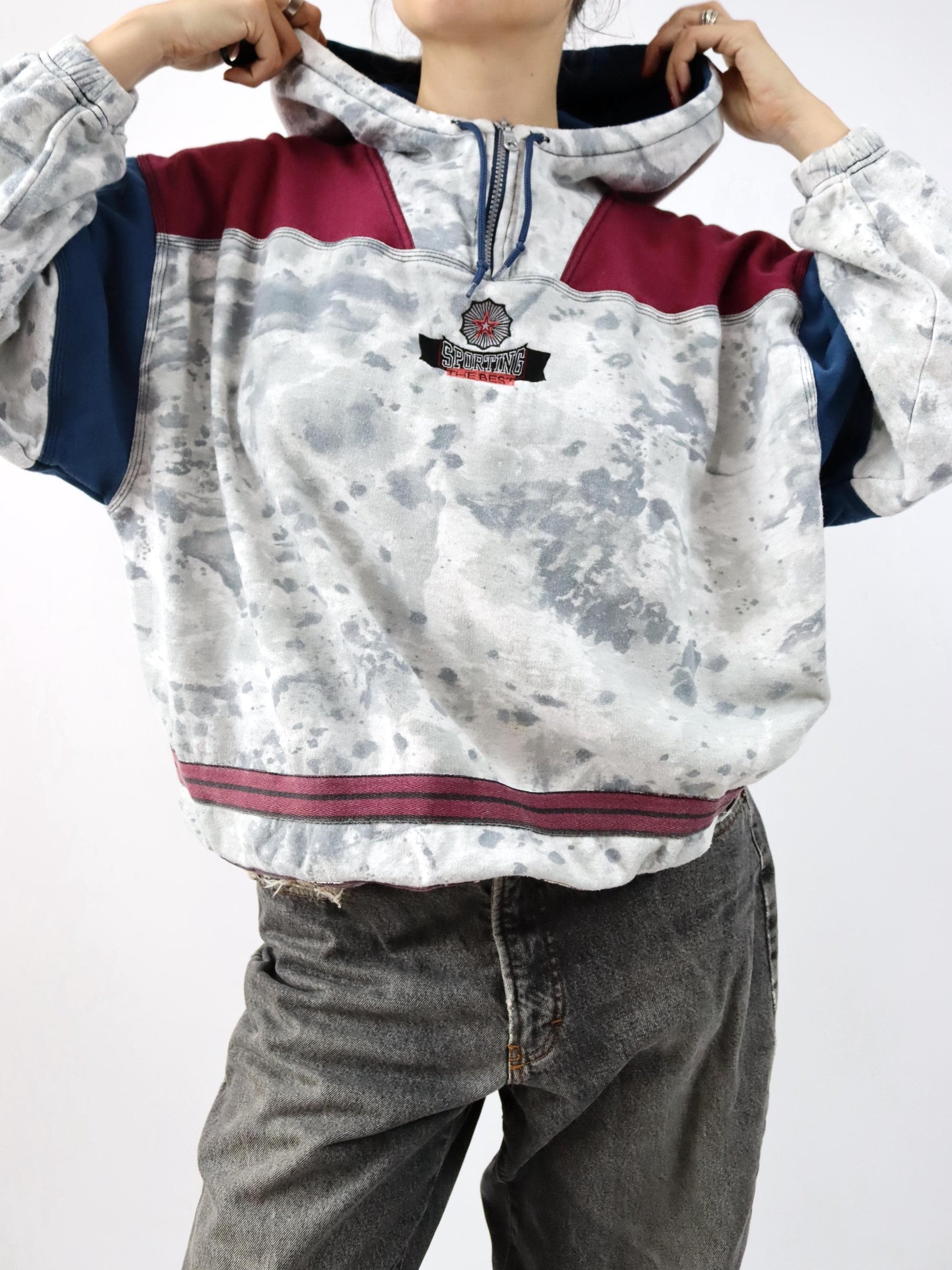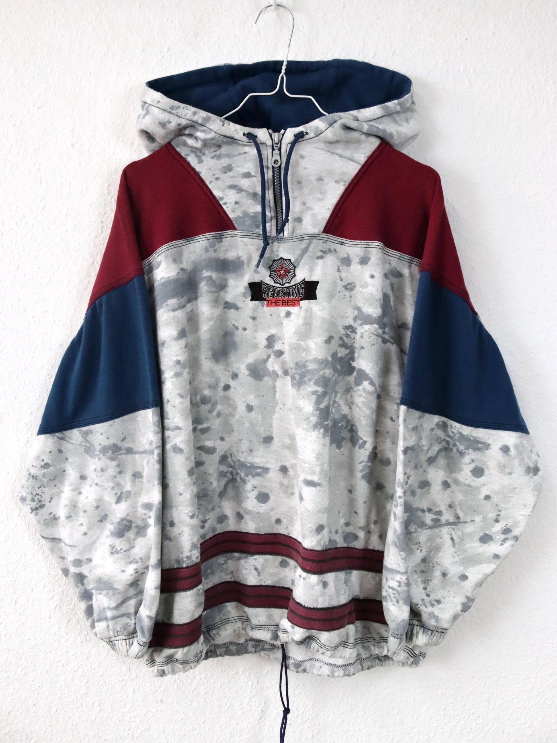 Vintage 80s 90s KILLTEC Hoodie Pullover Hood Batik Sticker grey blue red M