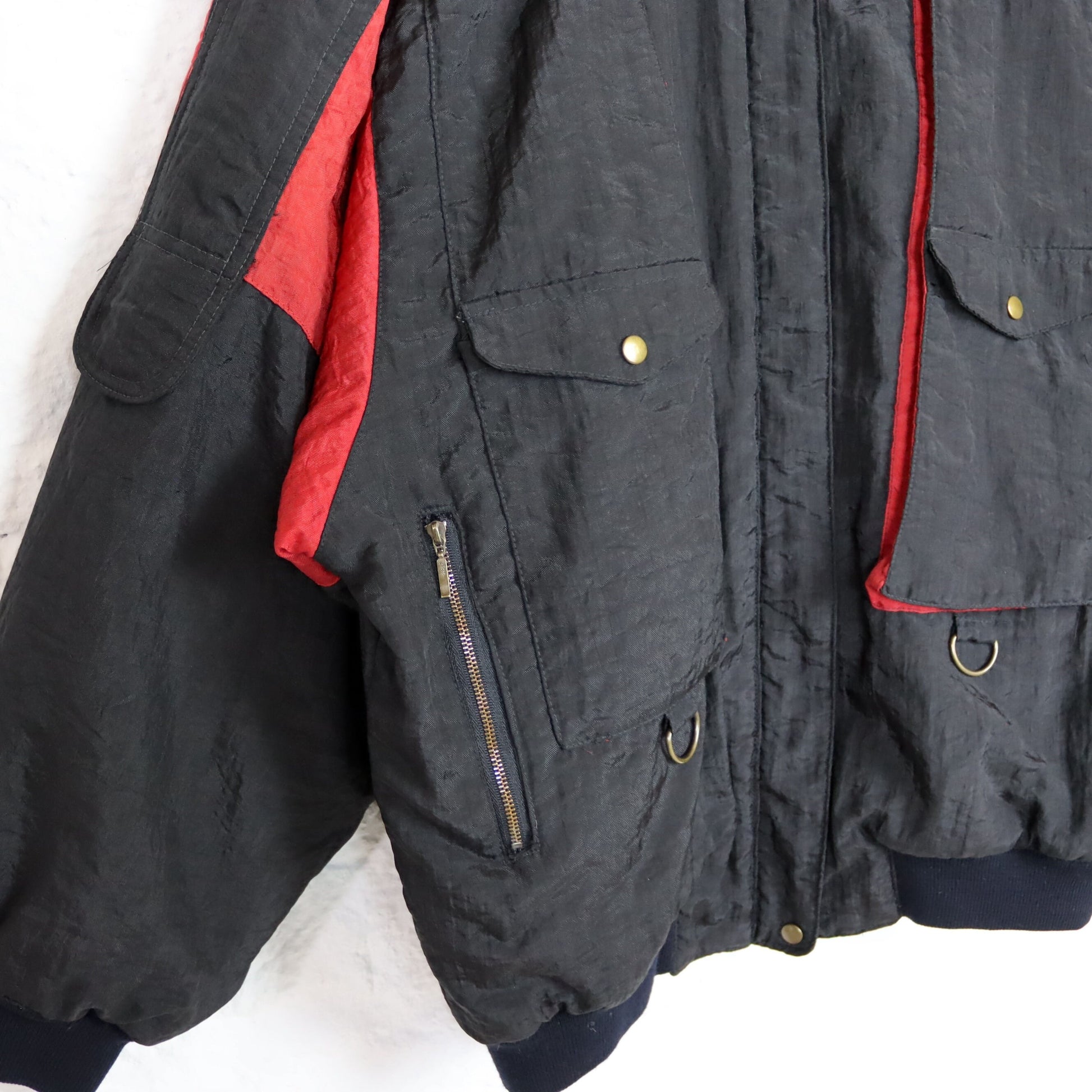 Vintage 80s 90s LADIES FASHION jacket lightly lined collar black red shiny M