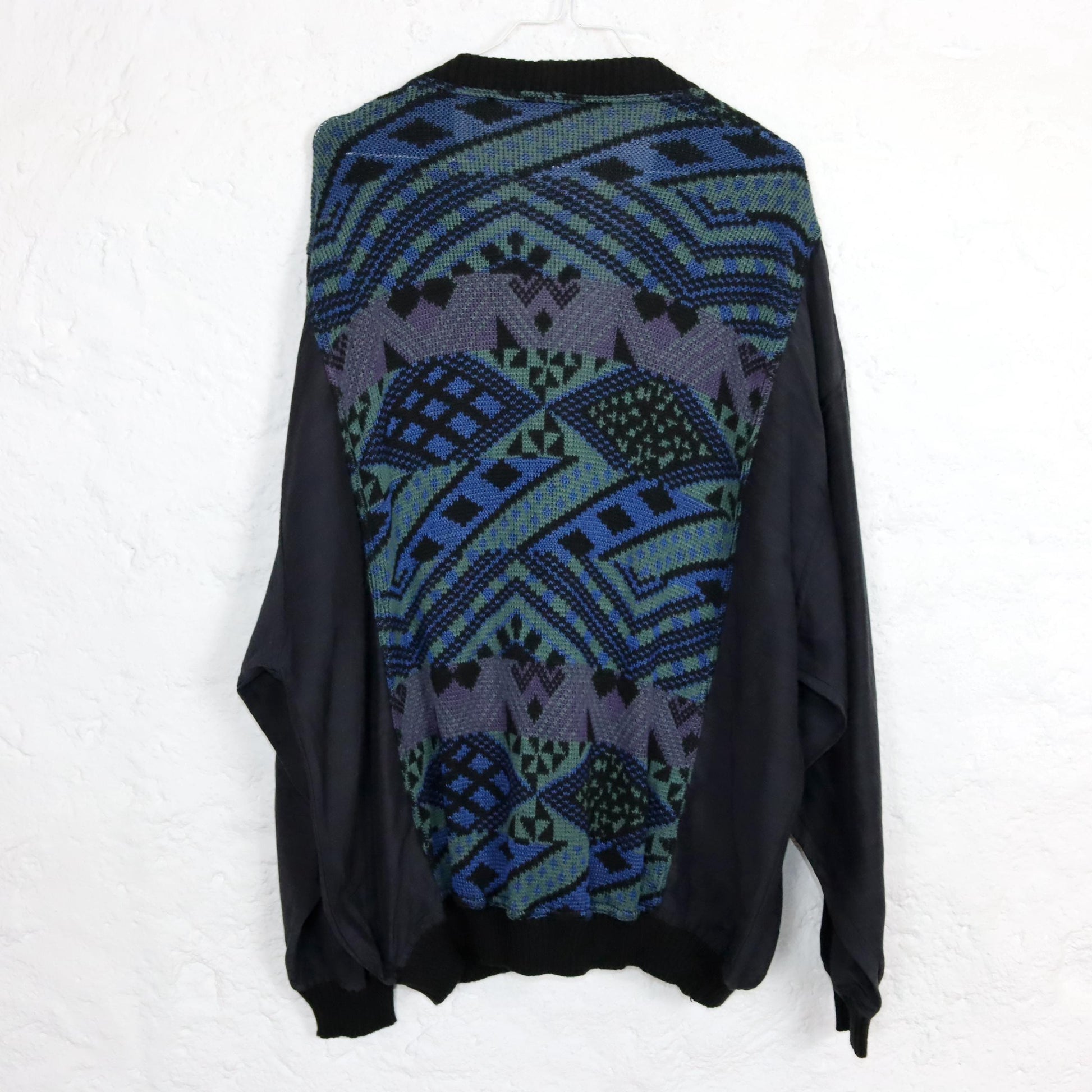 Vintage 80s 90s MANNA cardigan patterned button row blue XL 54