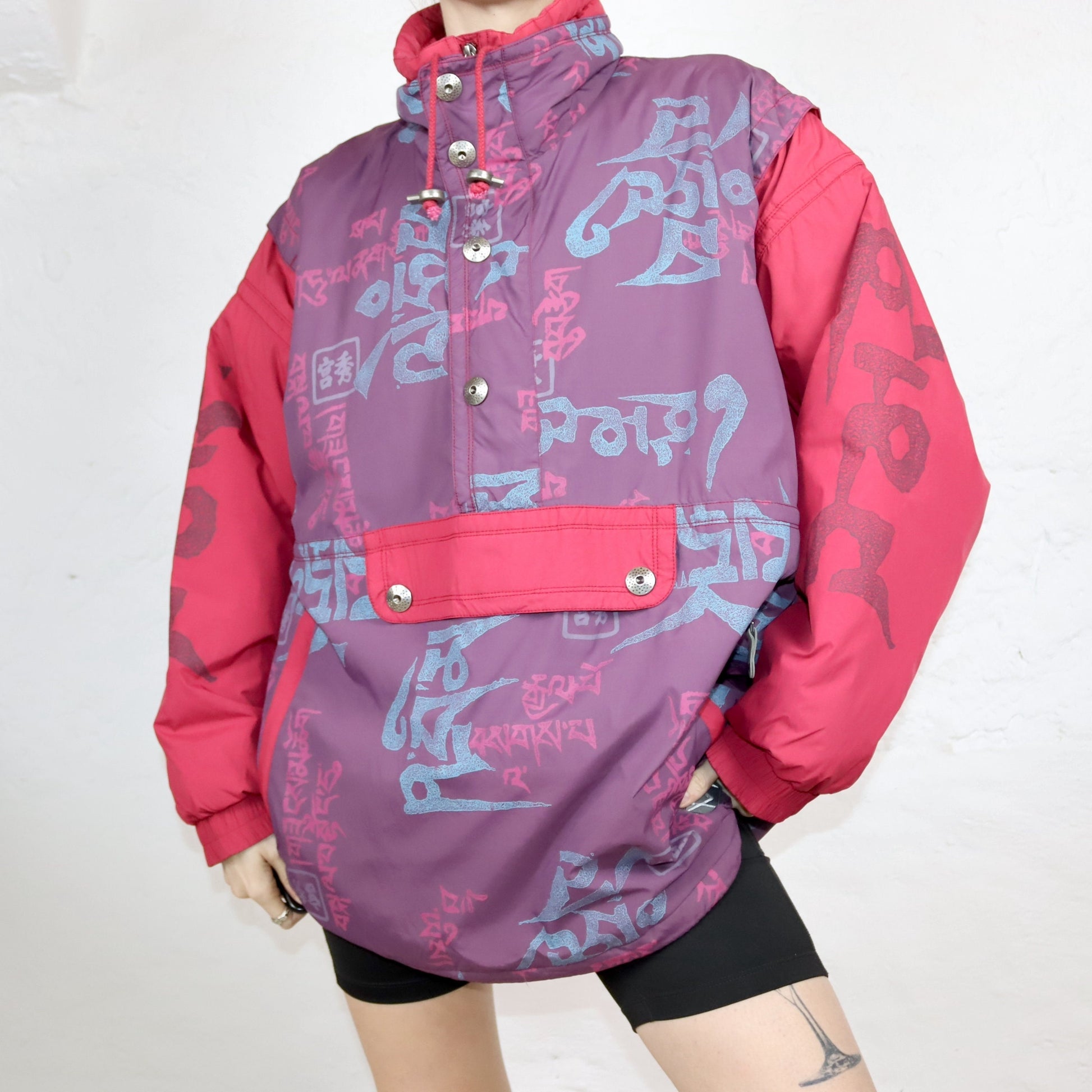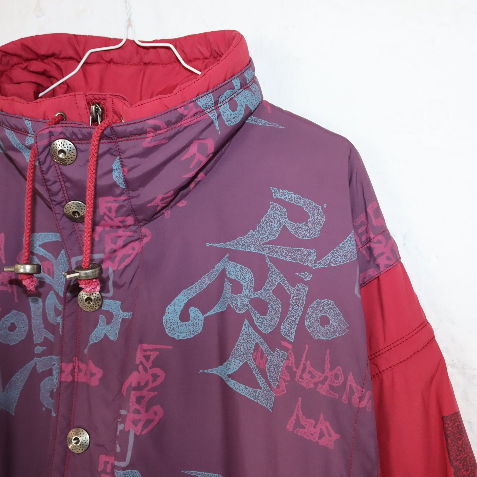 Vintage 80s 90s MAYER jacket overcoat lined stand-up collar crazy pattern bum bag L