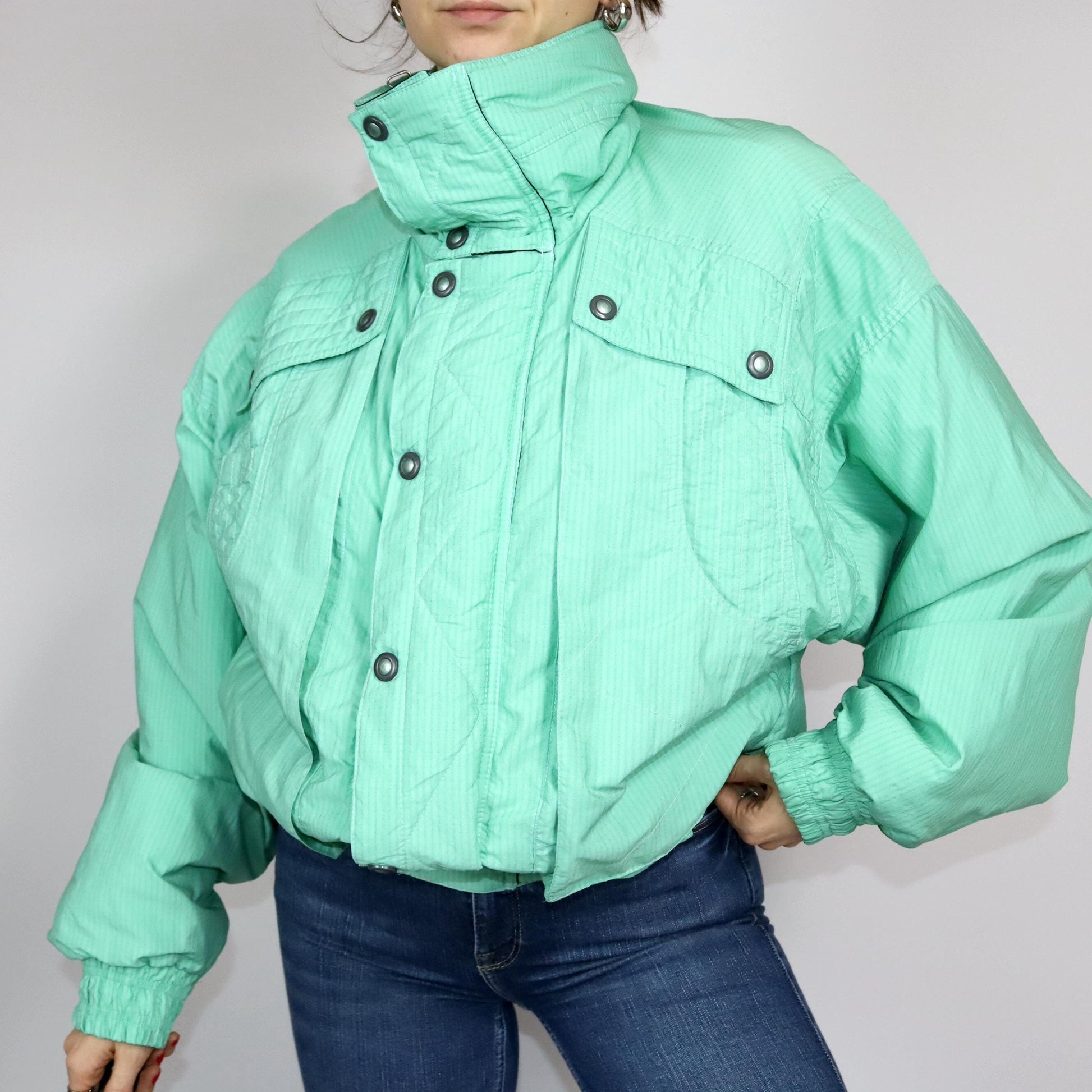 Vintage 80s 90s MDC winter jacket ski jacket lined turquoise stand-up collar 48 M