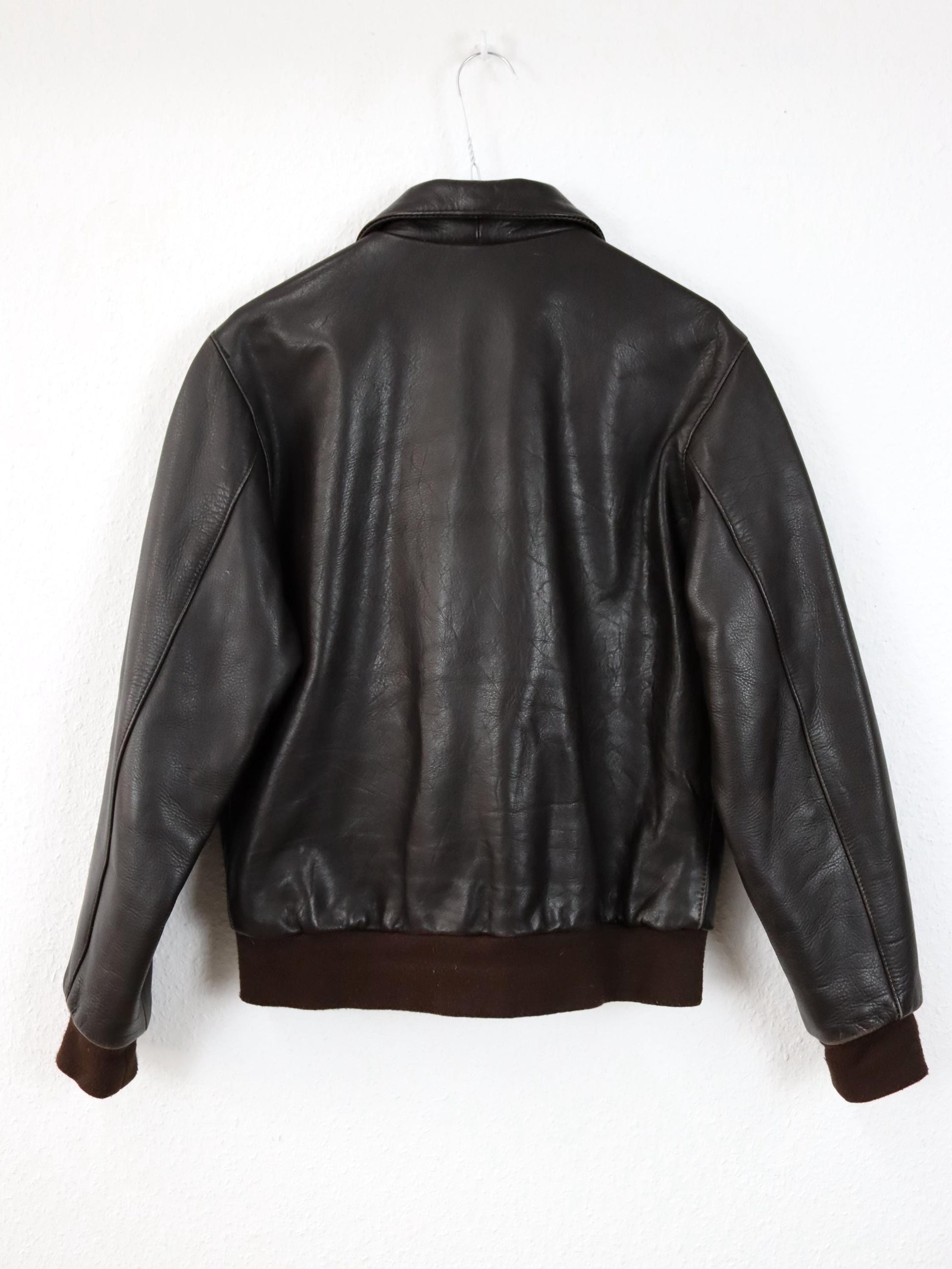 Vintage 80s 90s NOBLE HOUSE Heavy Leather Jacket Brown Bomber XS/S