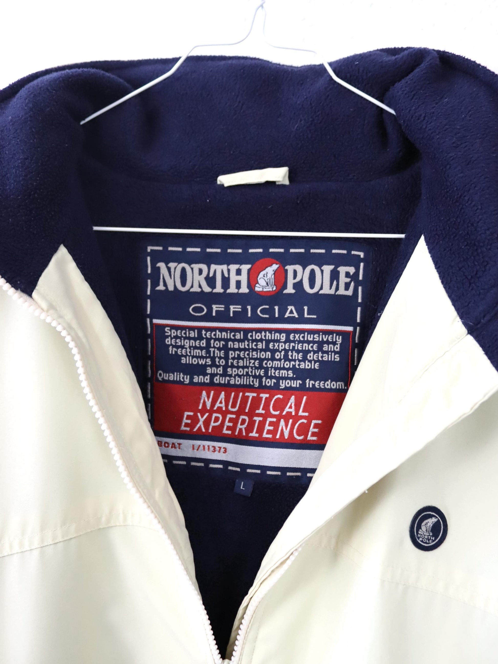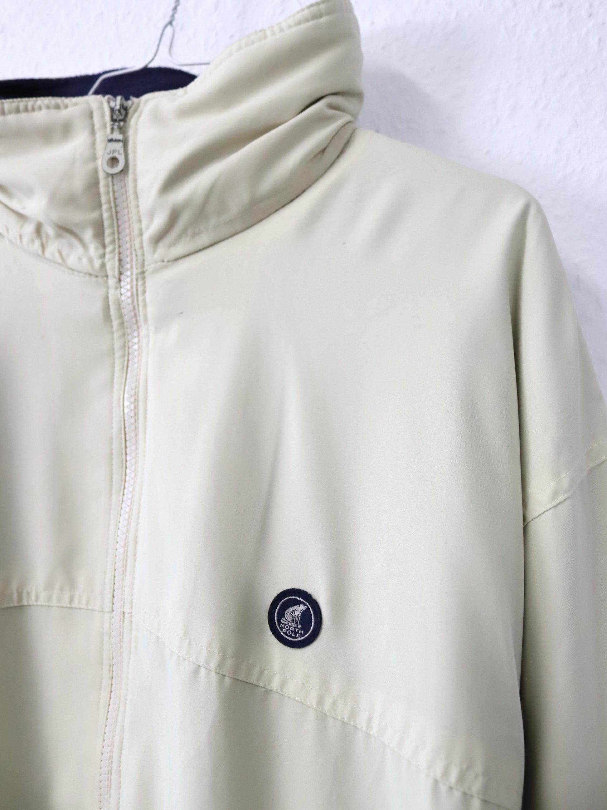 Vintage 80s/90s NORTHPOLE jacket, stand-up collar, fleece lining, yellow/blue, size L