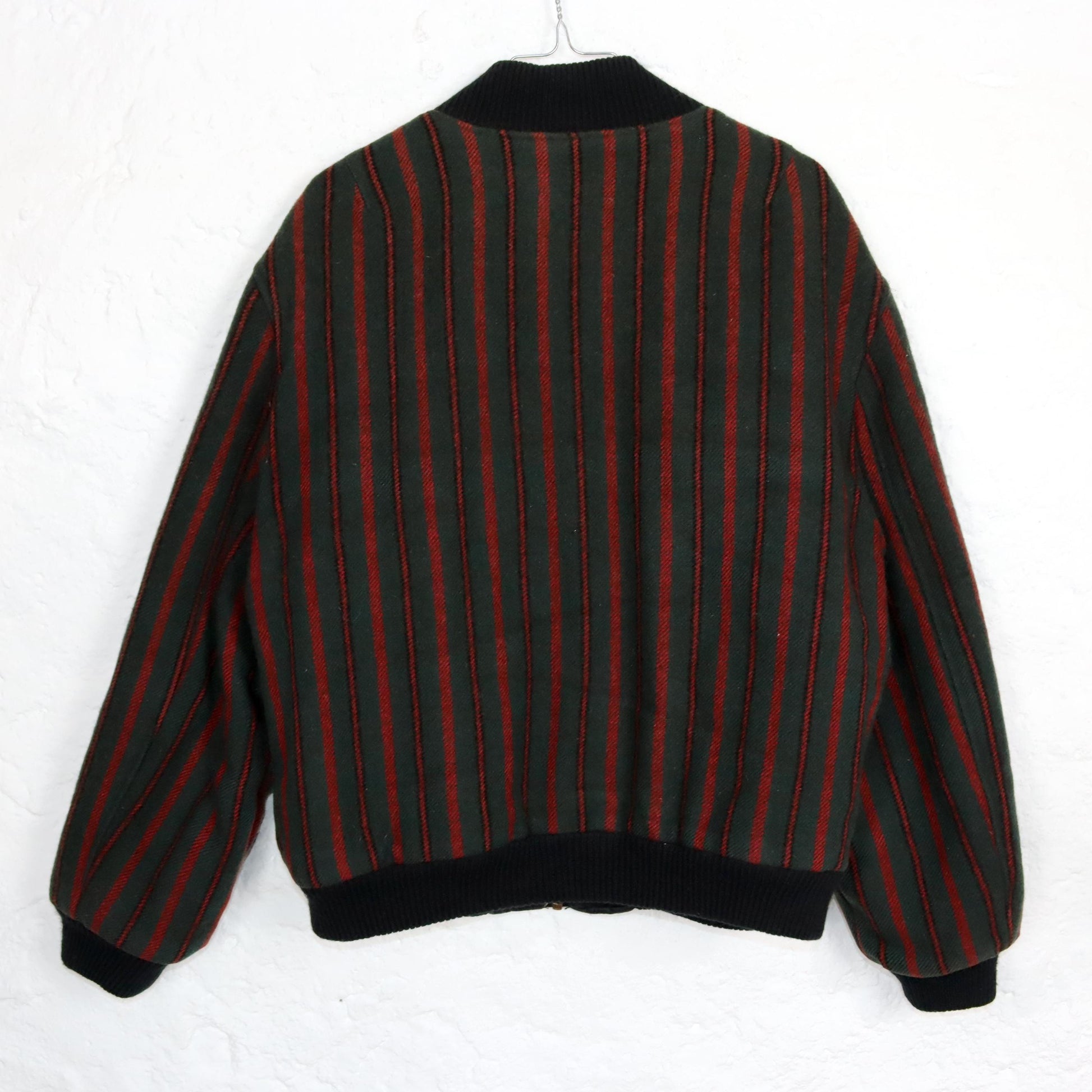 Vintage 80s 90s REDMAN bomber jacket wool lightly lined striped dark green red M