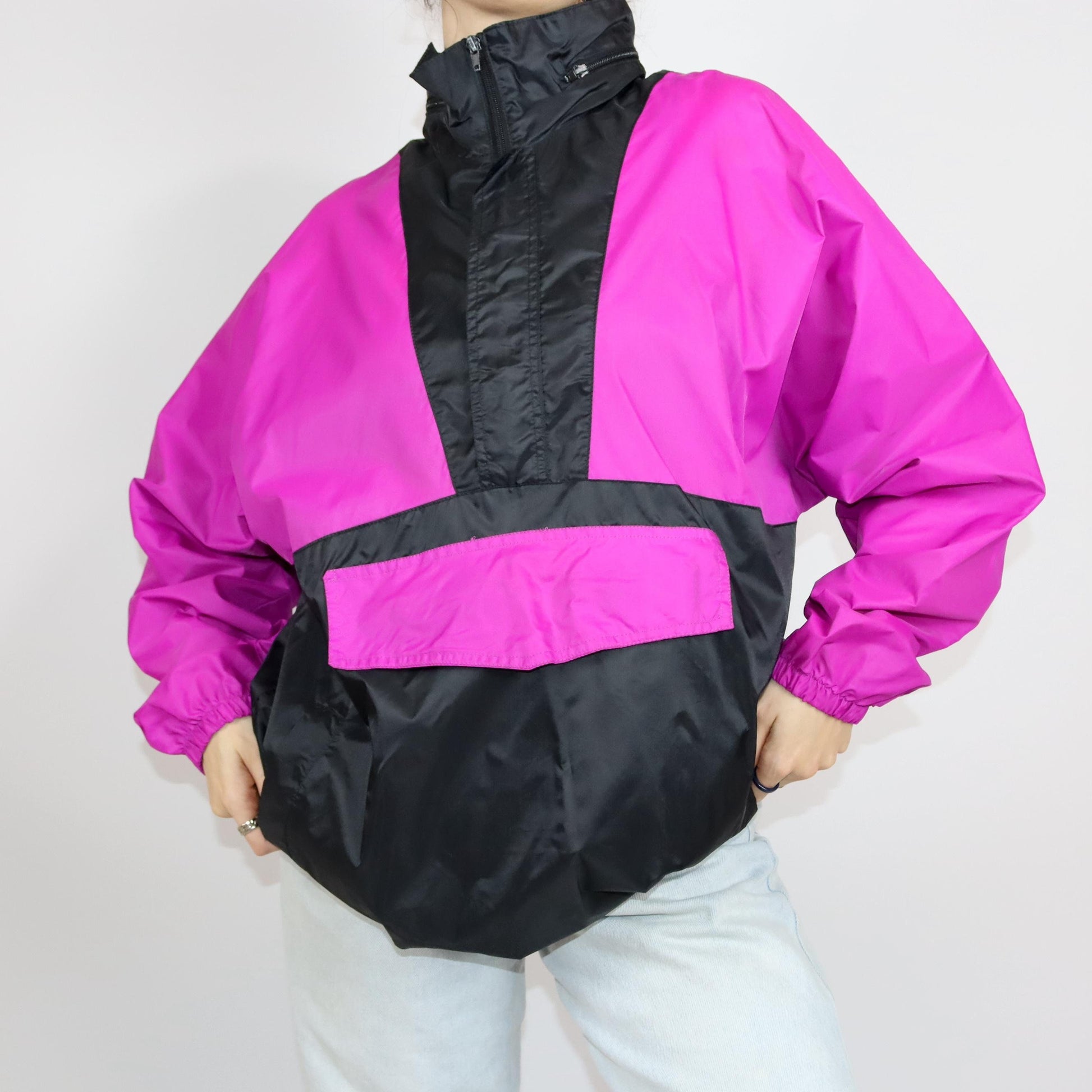Vintage 80s 90s rain jacket windbreaker overcoat pink black 52 L