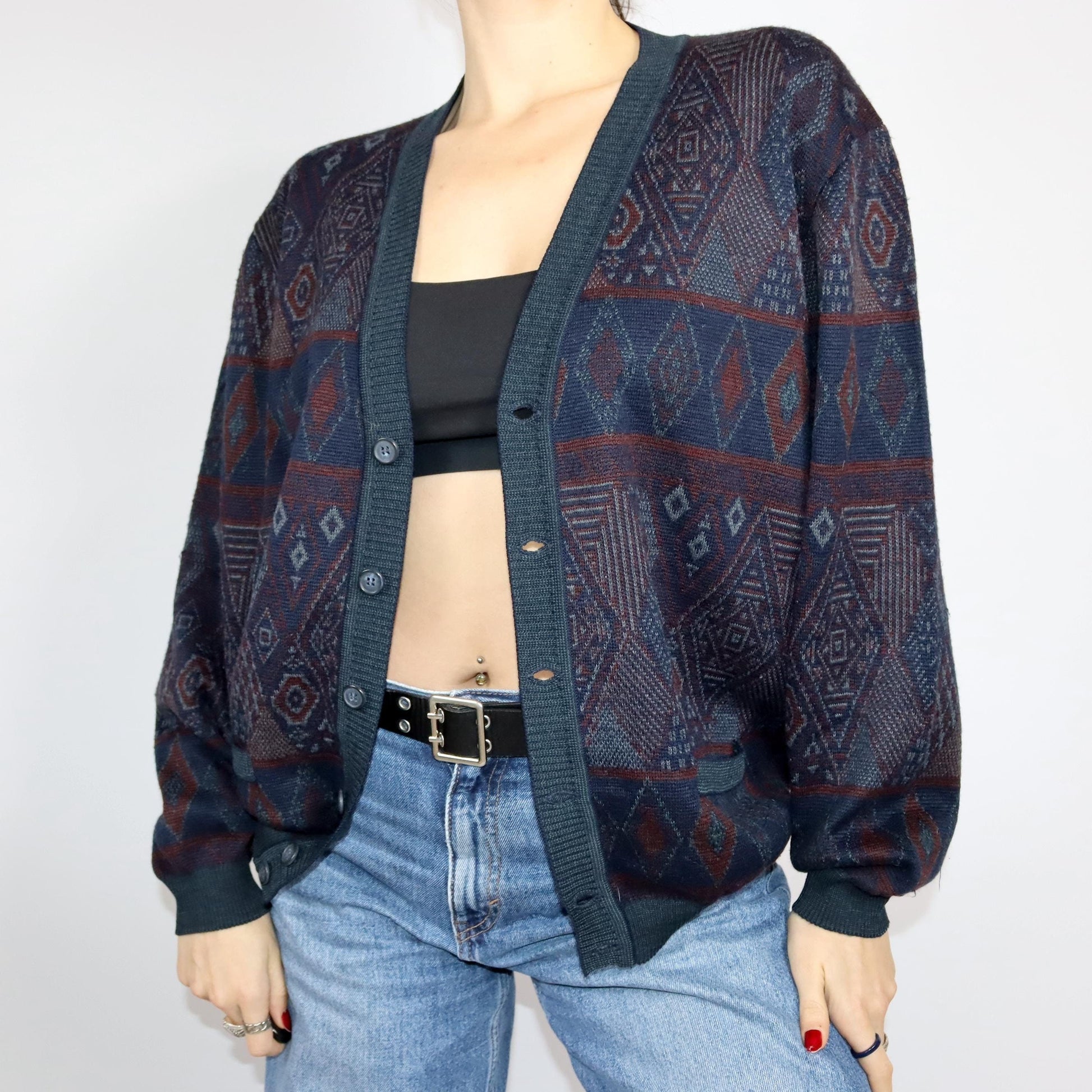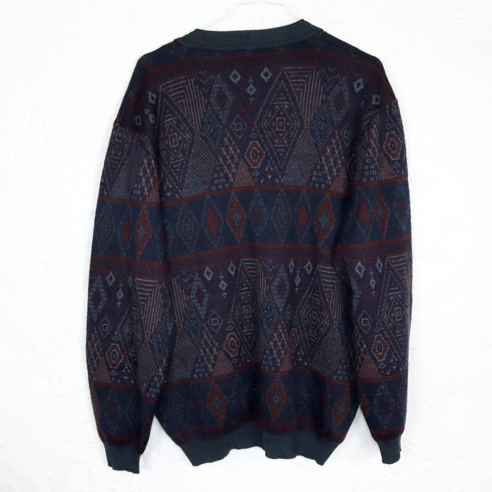 Vintage 80s 90s SIMONS Cardigan patterned button placket wool cardigan wool M/L