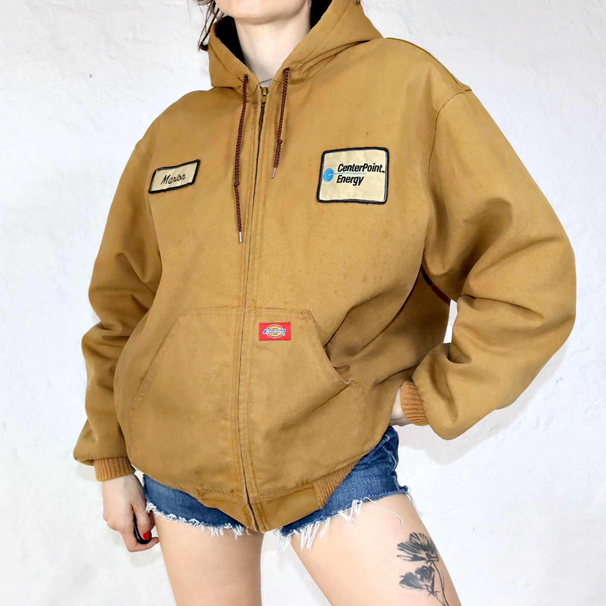 Vintage 90s 00s Y2k DICKIES Workwear Jacket lightly lined with hood beige XL