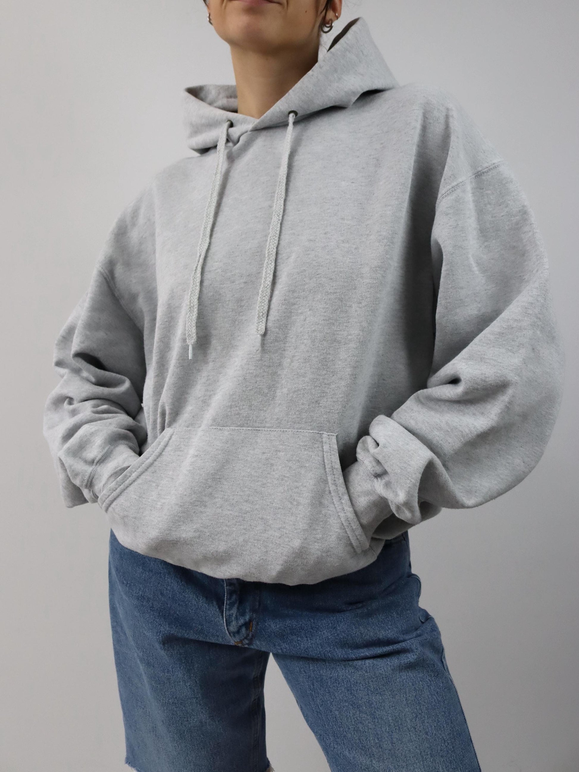 Vintage 90er Y2k FRUIT of the LOOM Hoodie Pullover Kapuze grau meliert XL