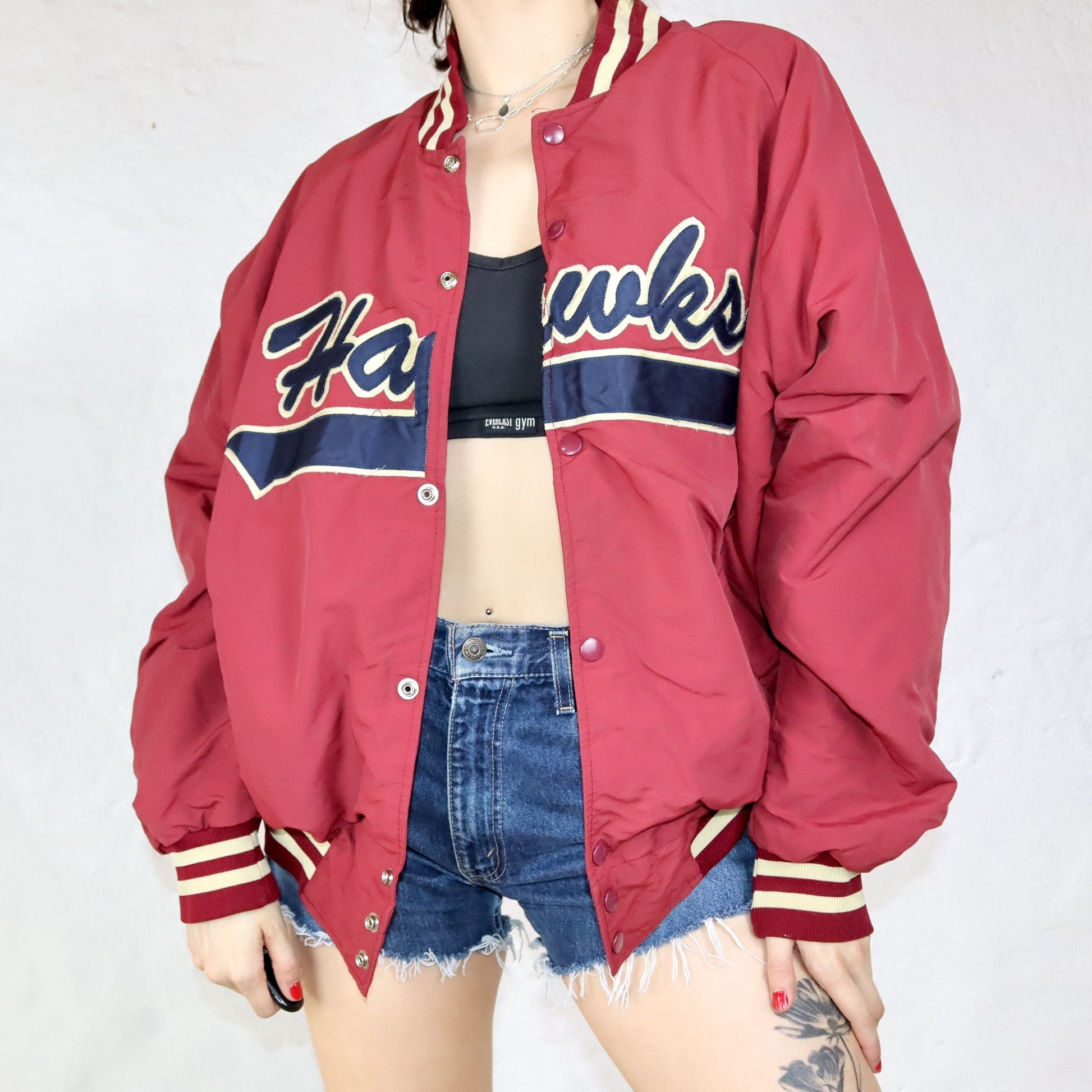 Vintage Boathouse Sports Baseball Jacket Hawks USA Cook Burgundy Inside Fleece XL