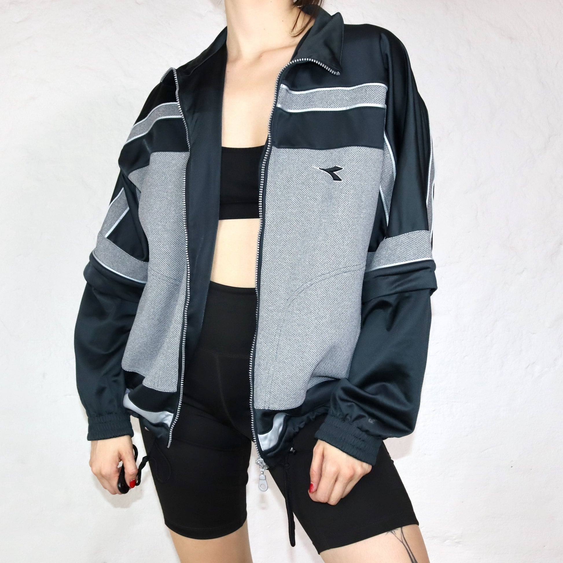 Vintage DIADORA tracksuit jacket with removable sleeves black grey 46