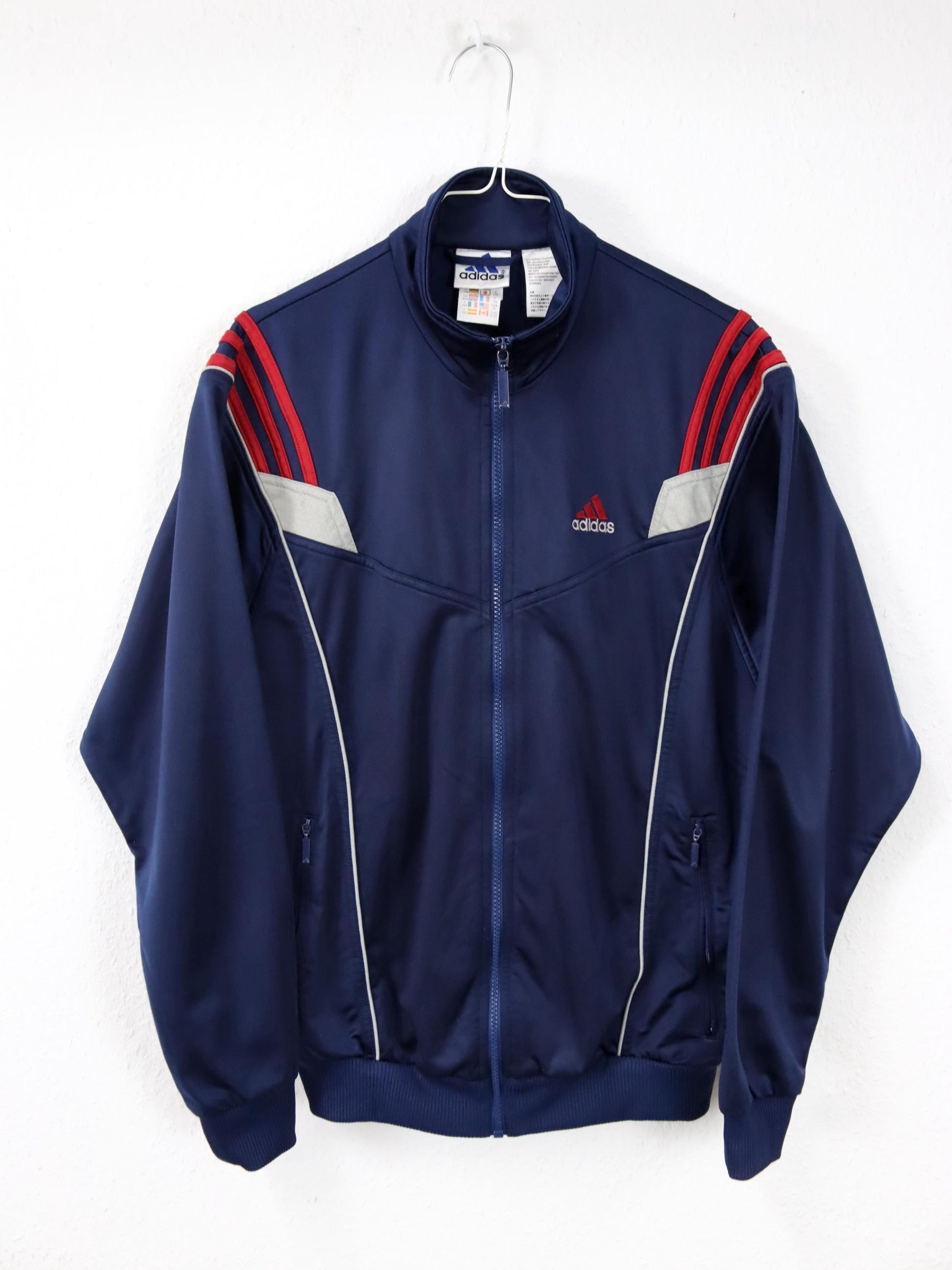 Vintage 80er 90er ADIDAS Trainingsjacke Jacke Stehkragen dunkelblau rot 176 M