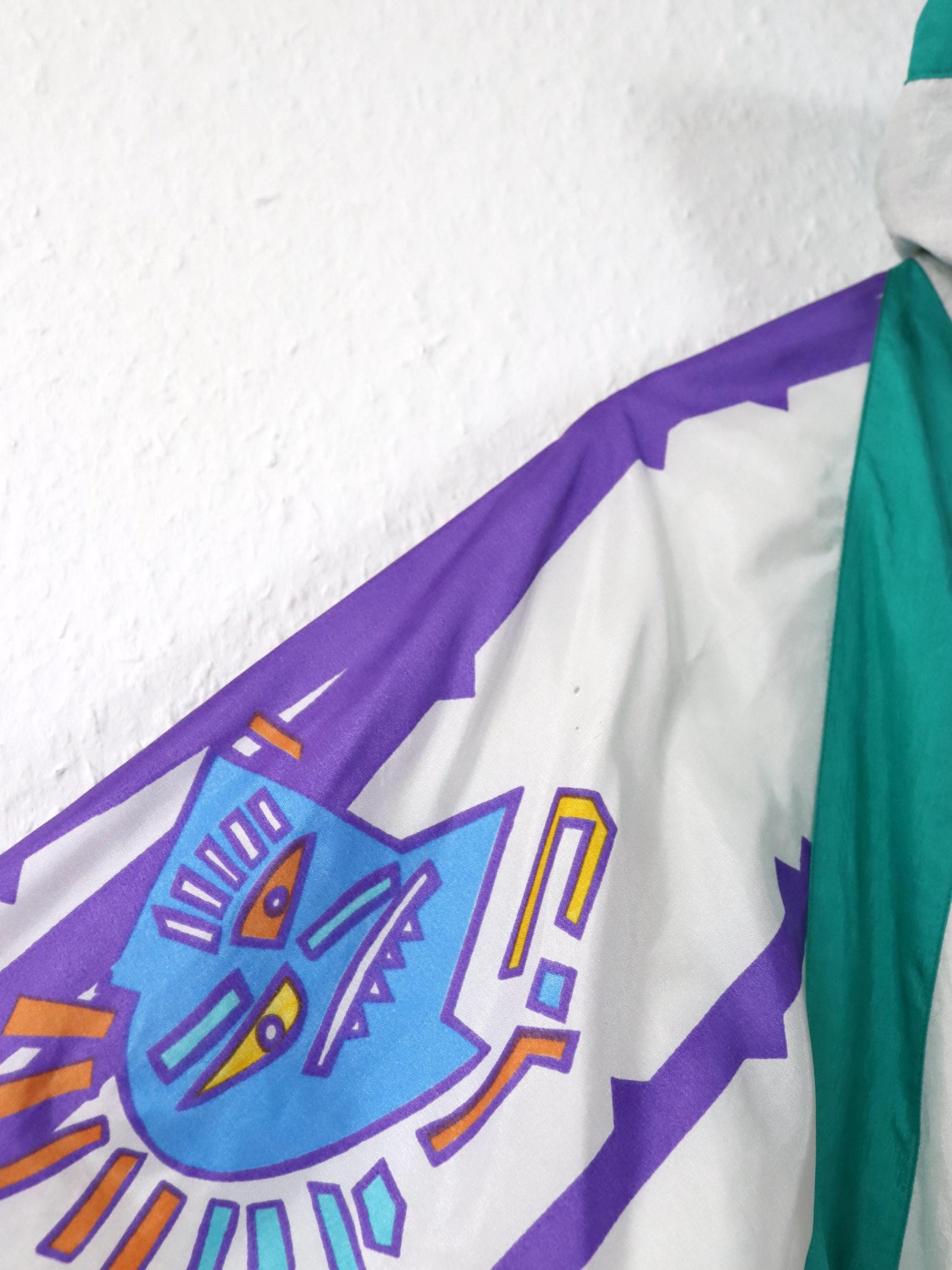 Vintage 80er 90er AK SPORT Trainingsjacke Jacke Stehkragen glänzend crazy pattern weiß bunt L
