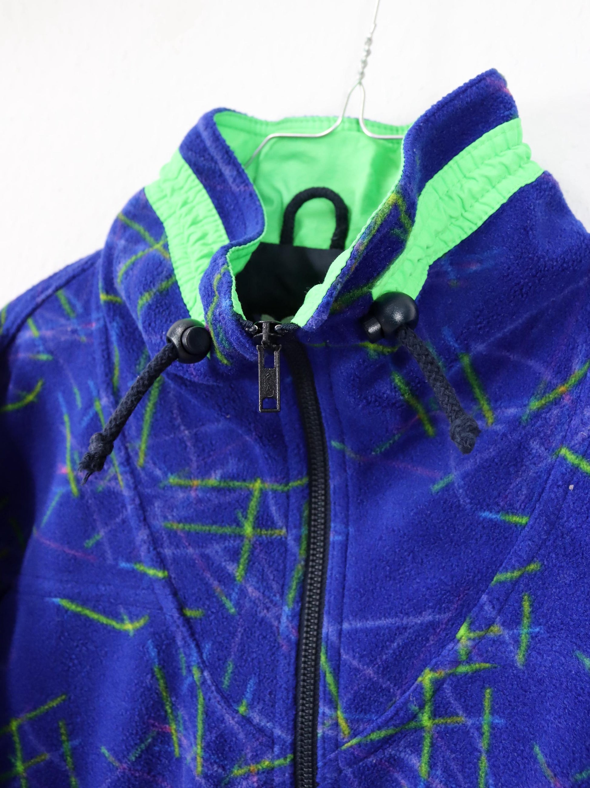 Vintage 80er 90er ASICS Fleecejacke Jacke Stehkragen crazy pattern blau grün M