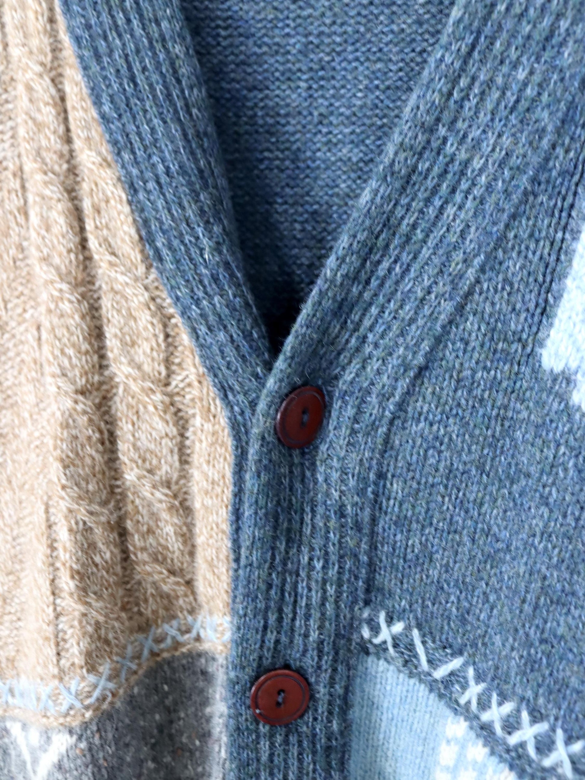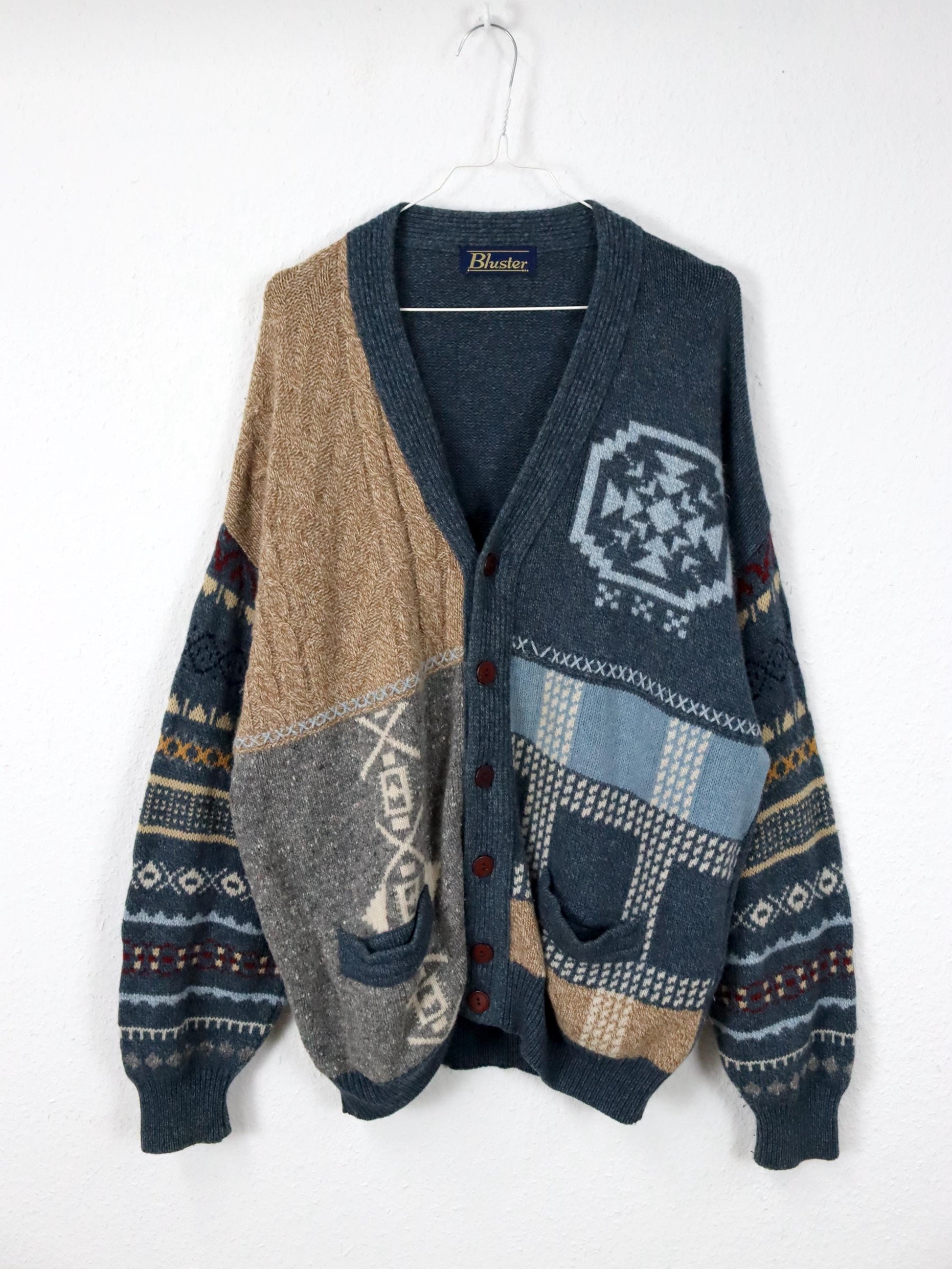 Vintage 80er 90er BLASTER Wollcardigan Cardigan Wolle Angora gemustert 50 L