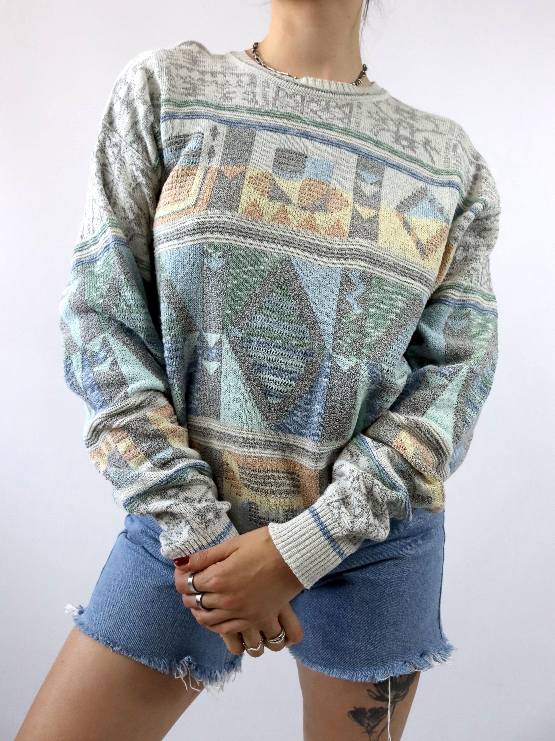 Vintage 80er 90er BORGO FORTE Pullover gemustert pastell 50 L