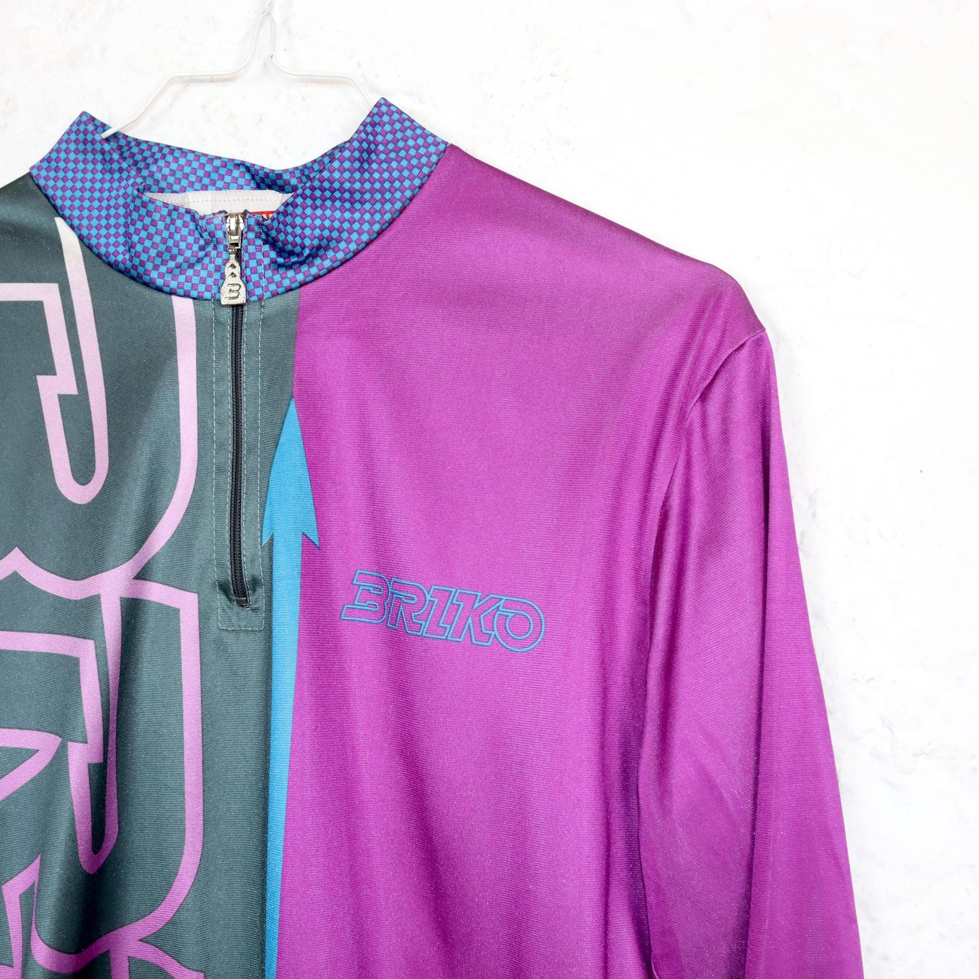 Vintage 80er 90er BRIKO Fahrradtrikot Racing Shirt blau lila langarm M
