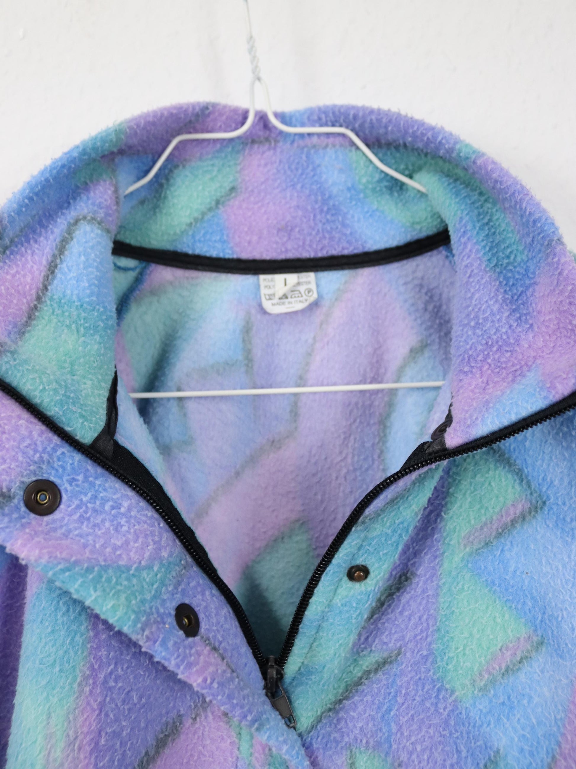 Vintage 80er 90er Fleecepullover Pullover crazy pattern flieder Stehkragen M/L