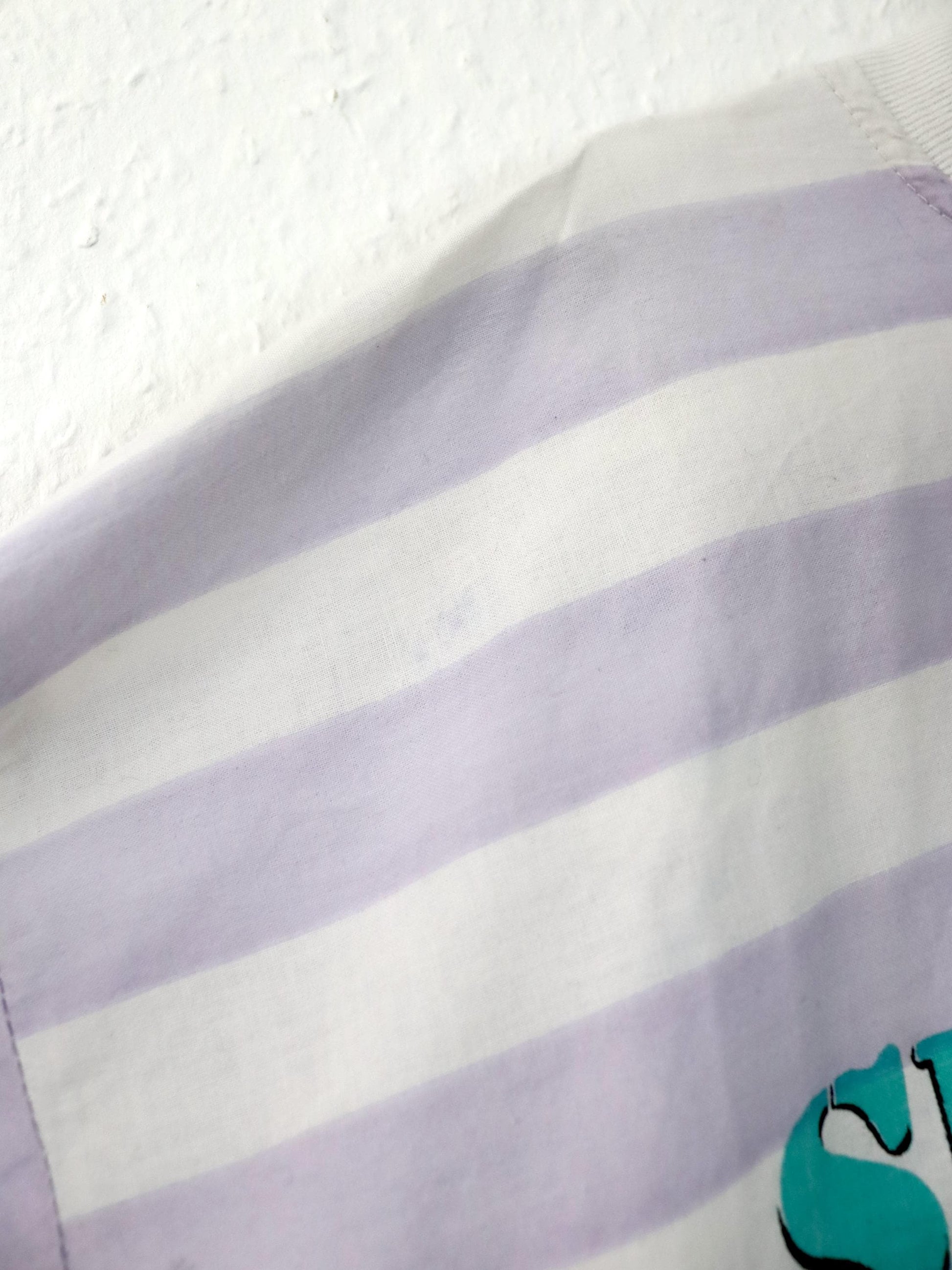Vintage 80er 90er IN TIME T-Shirt kurzarm gestreift Print weiß rosa L