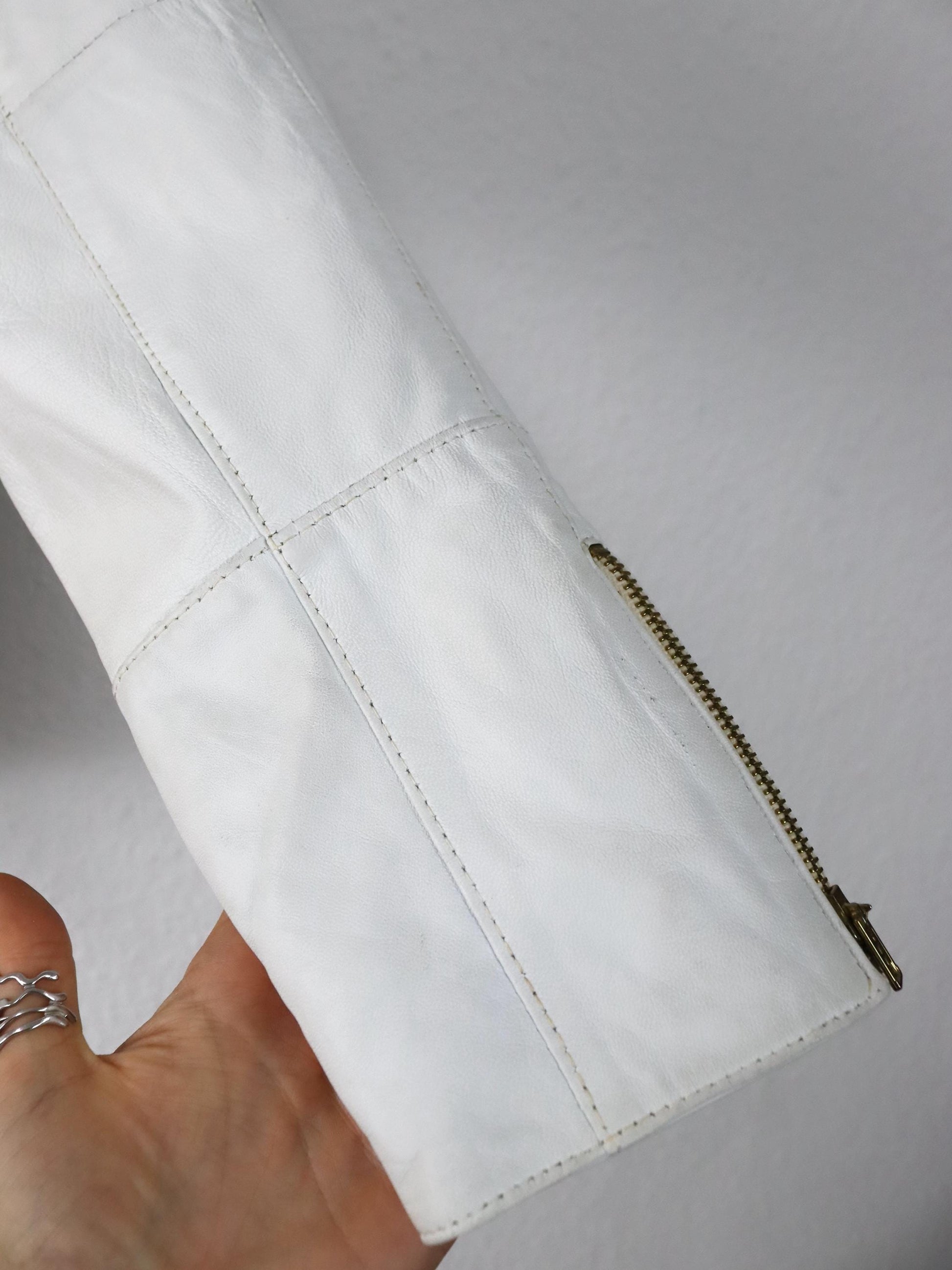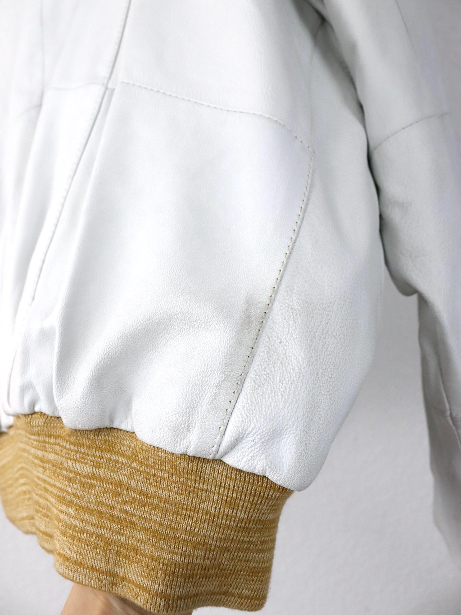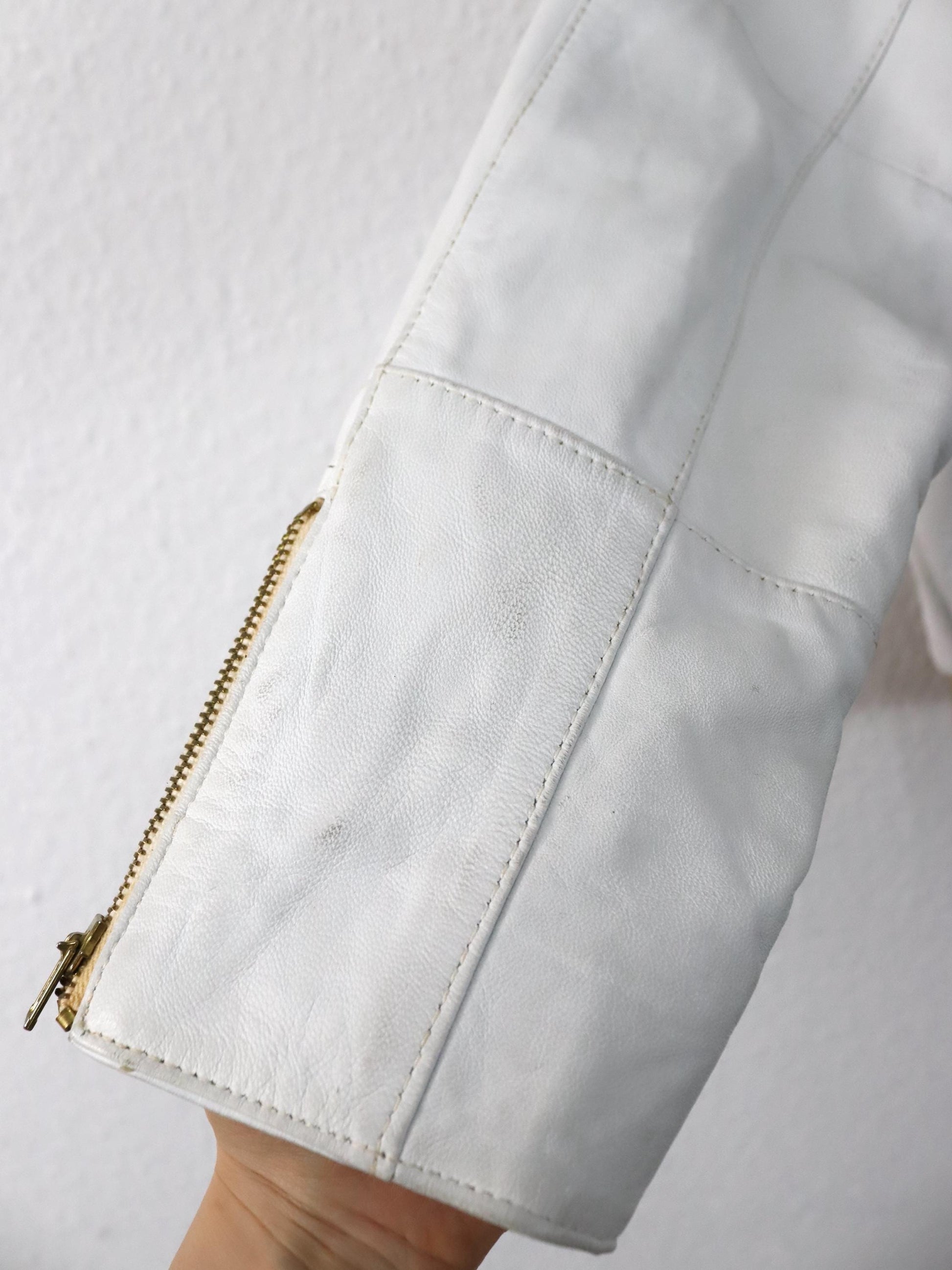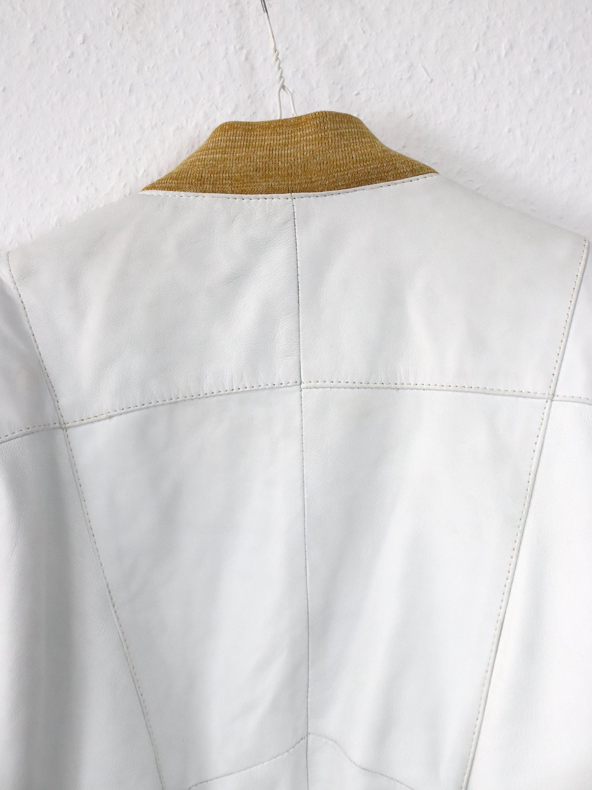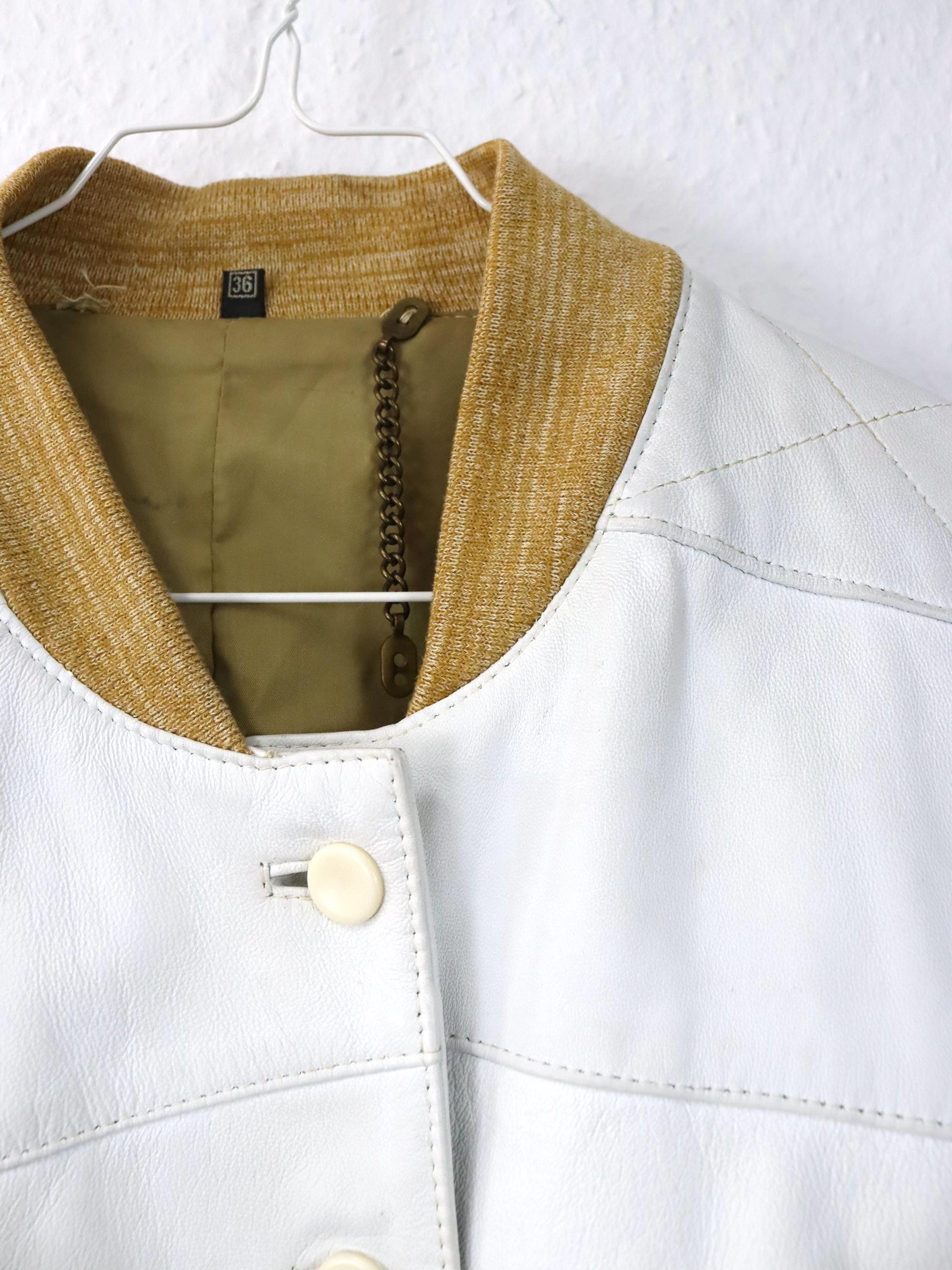 Vintage 80er 90er Lederjacke cremeweiß weiß Bomberjacke Schulterpolster 36