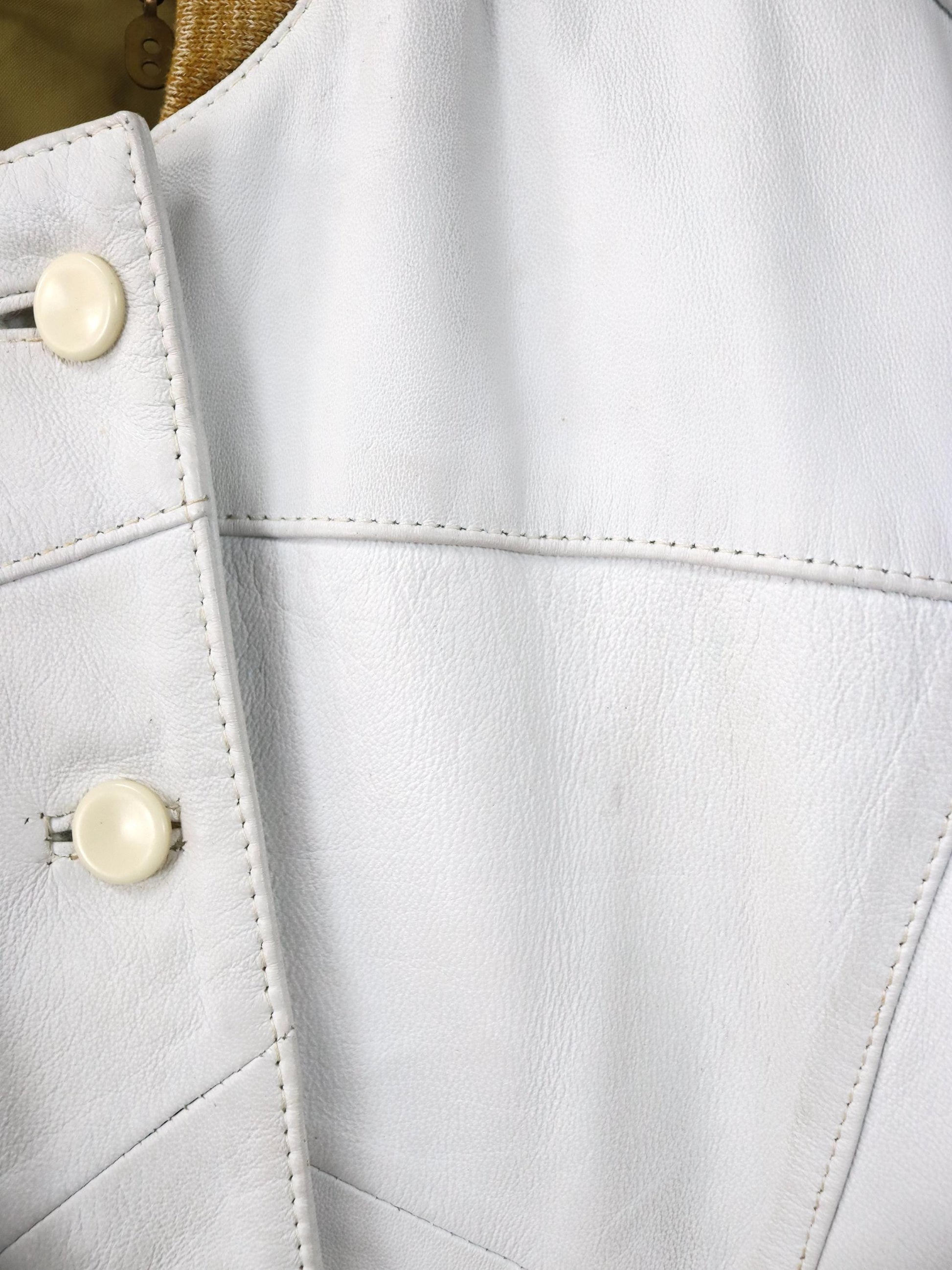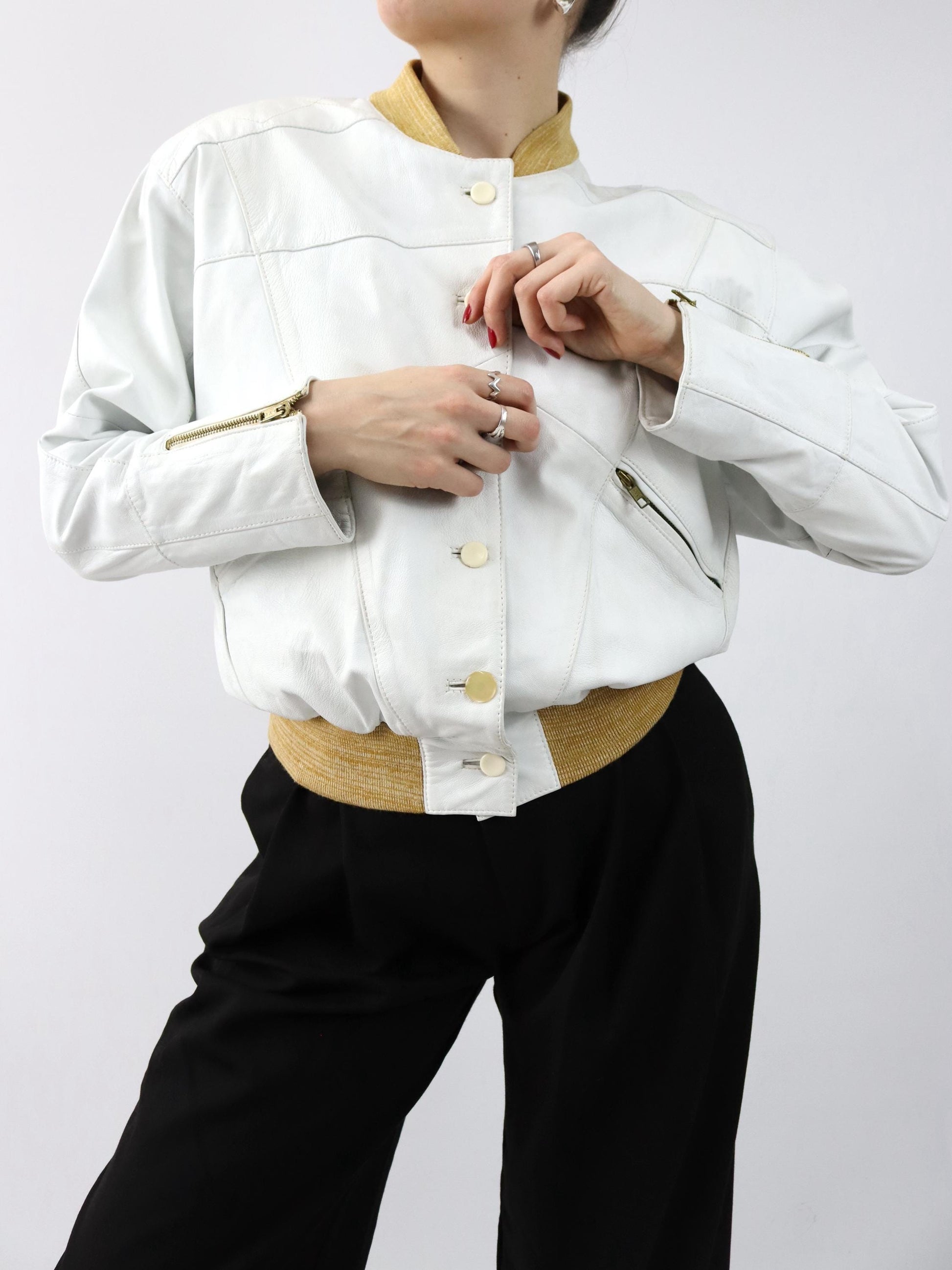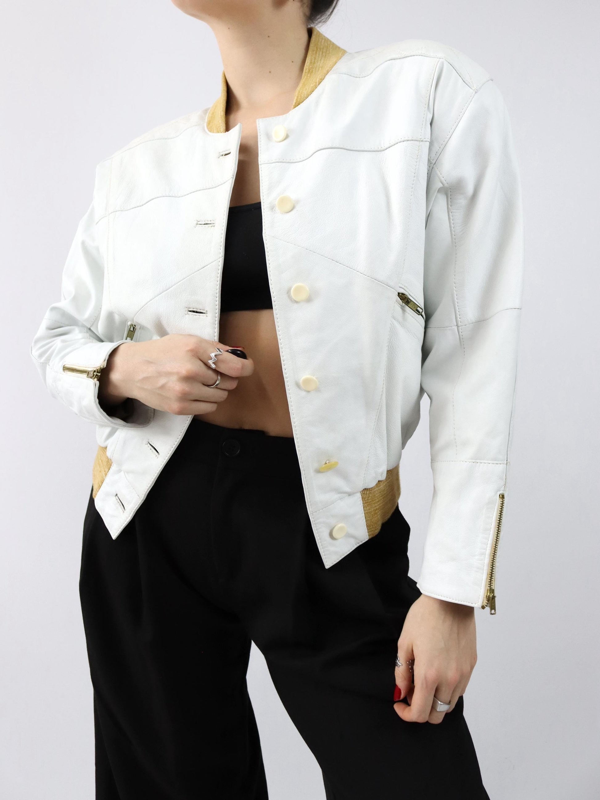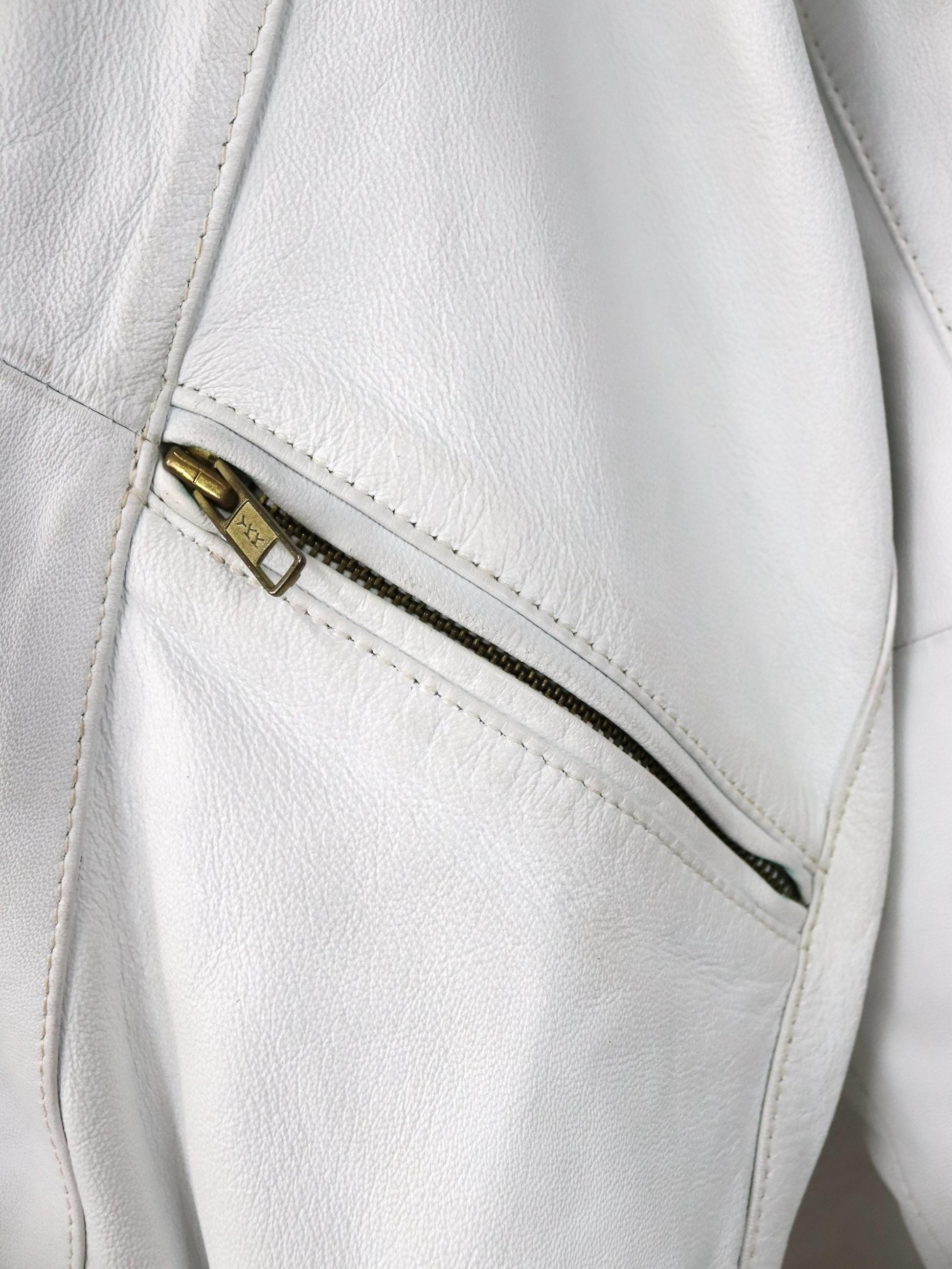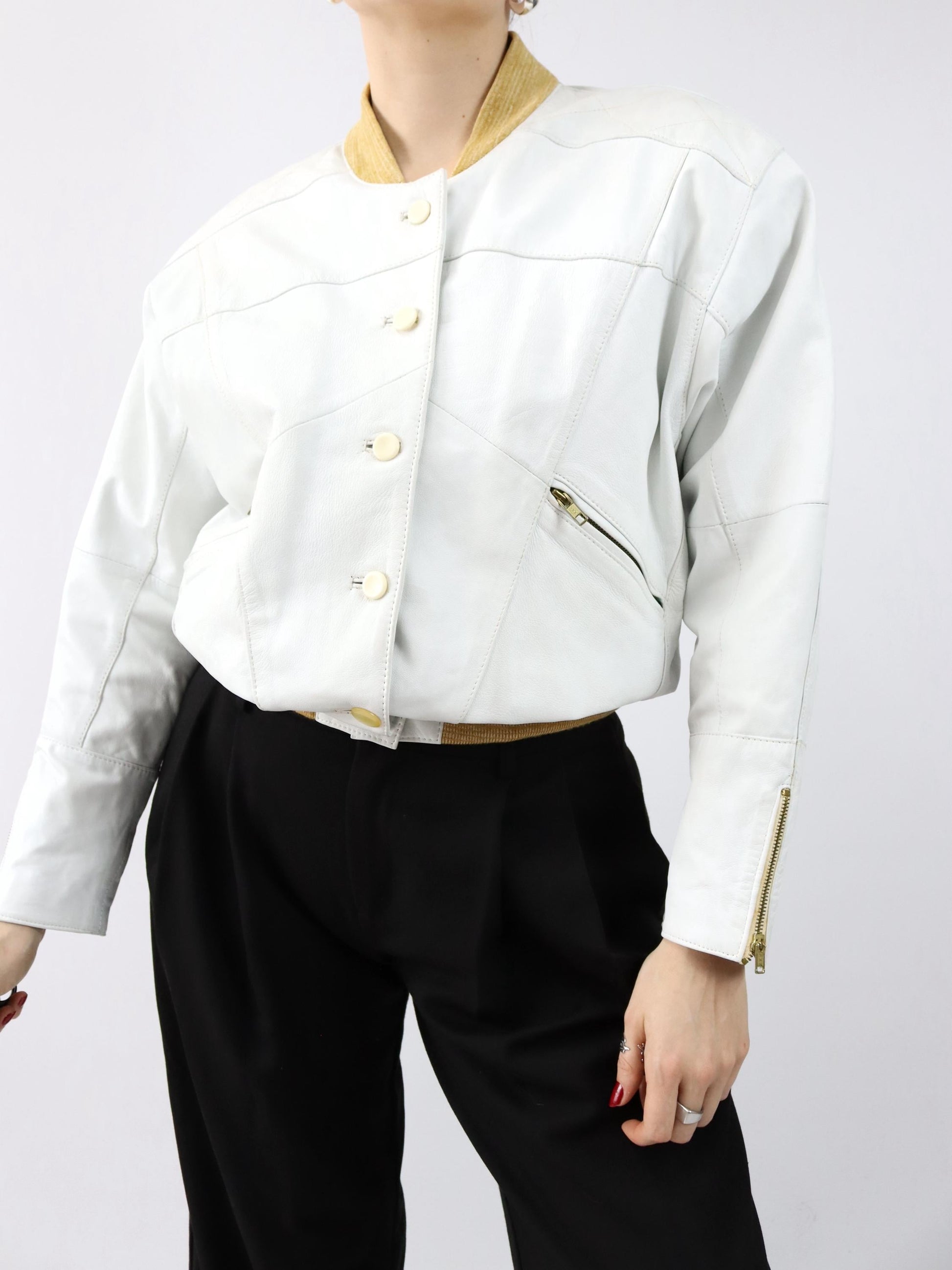 Vintage 80er 90er Lederjacke cremeweiß weiß Bomberjacke Schulterpolster 36