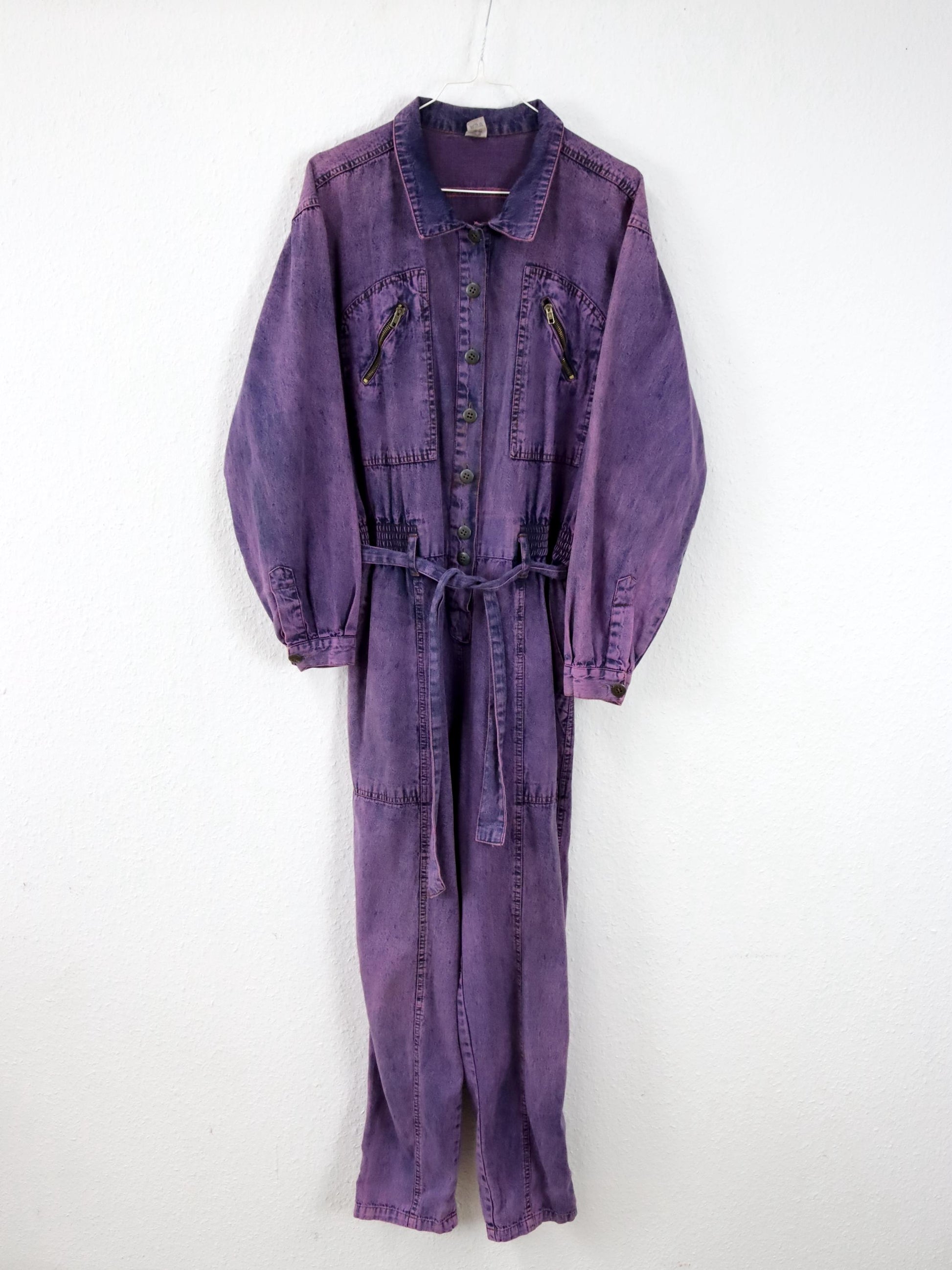 Vintage 80er 90er Overall Einteiler Denim Lila Gürtel stonewashed 38/40