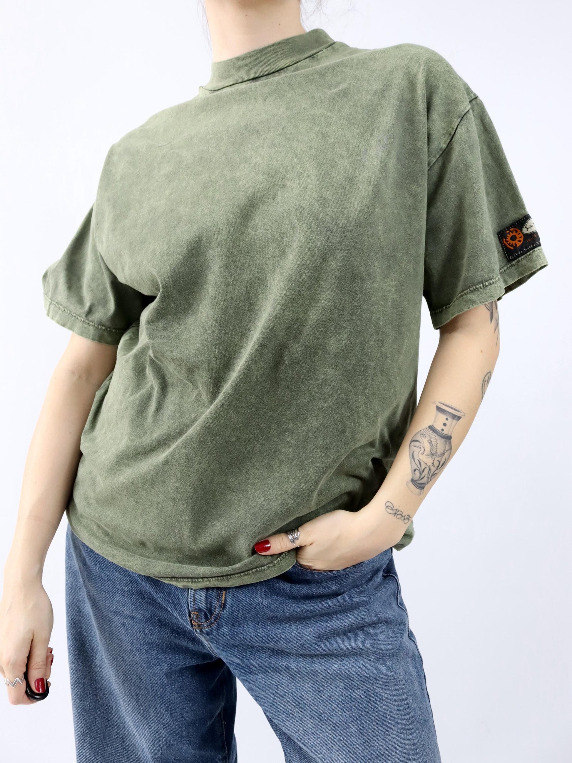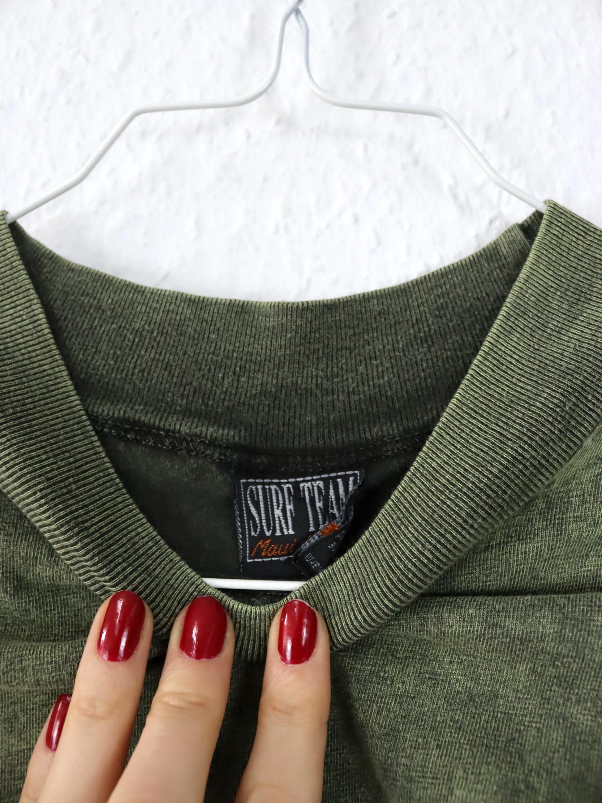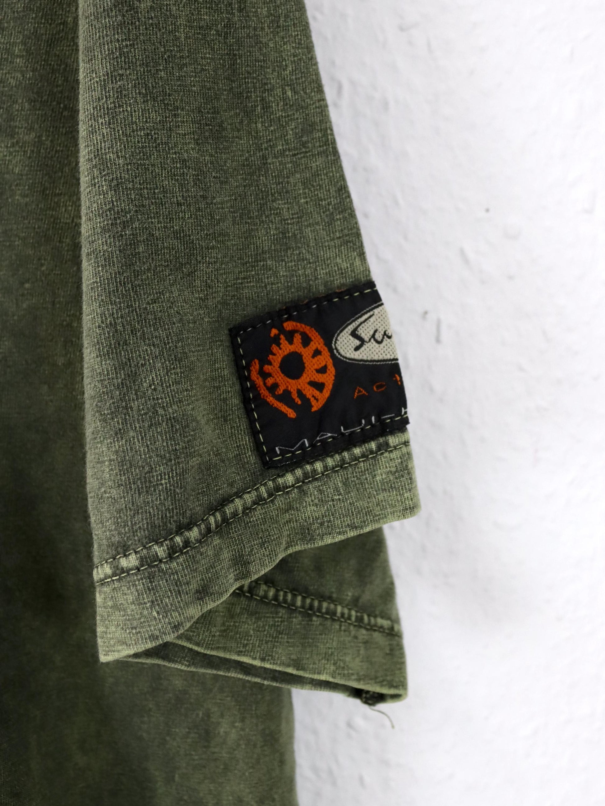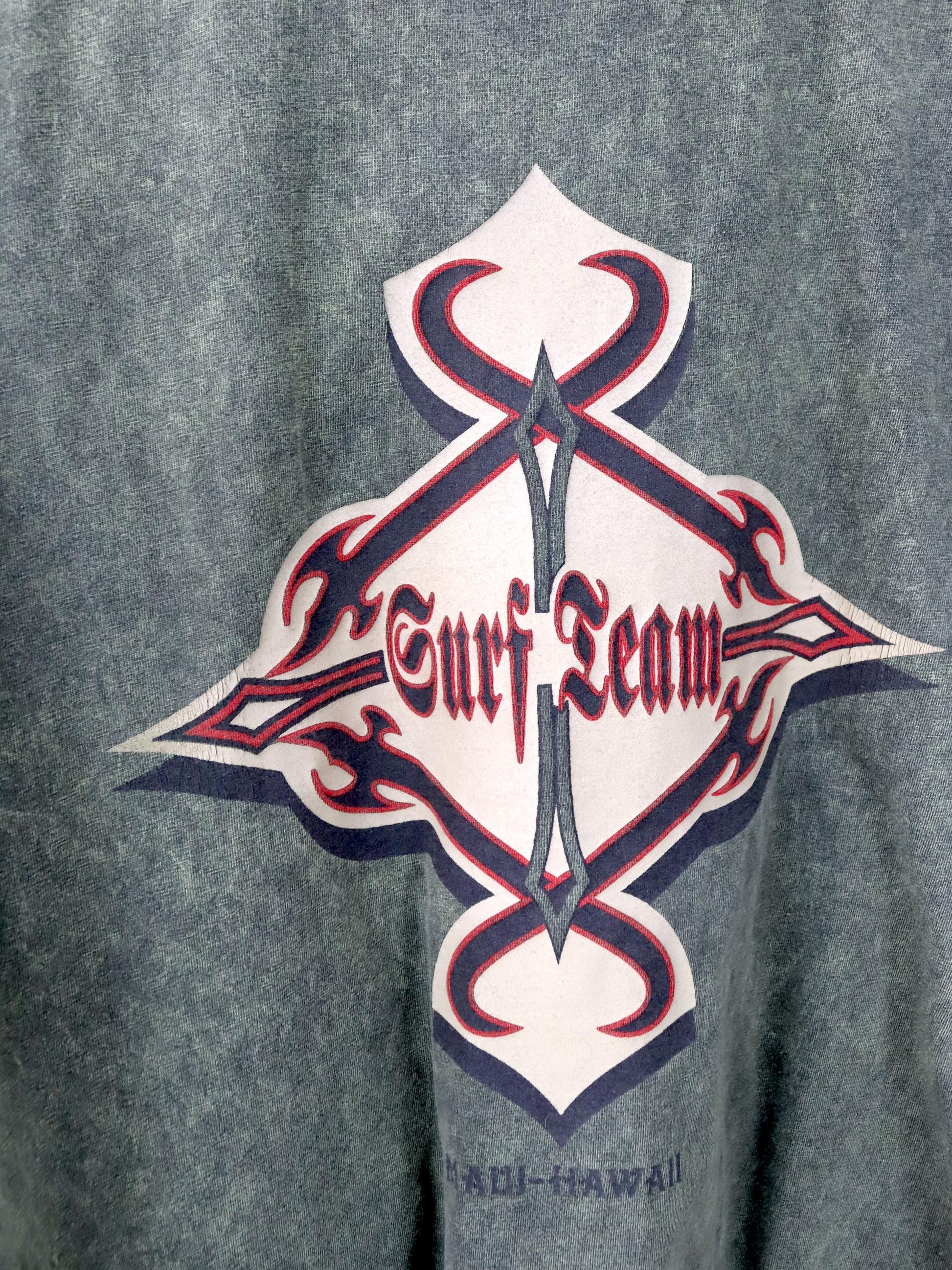 Vintage 80er 90er SURF TEAM T-Shirt kurzarm Backprint grün used look M