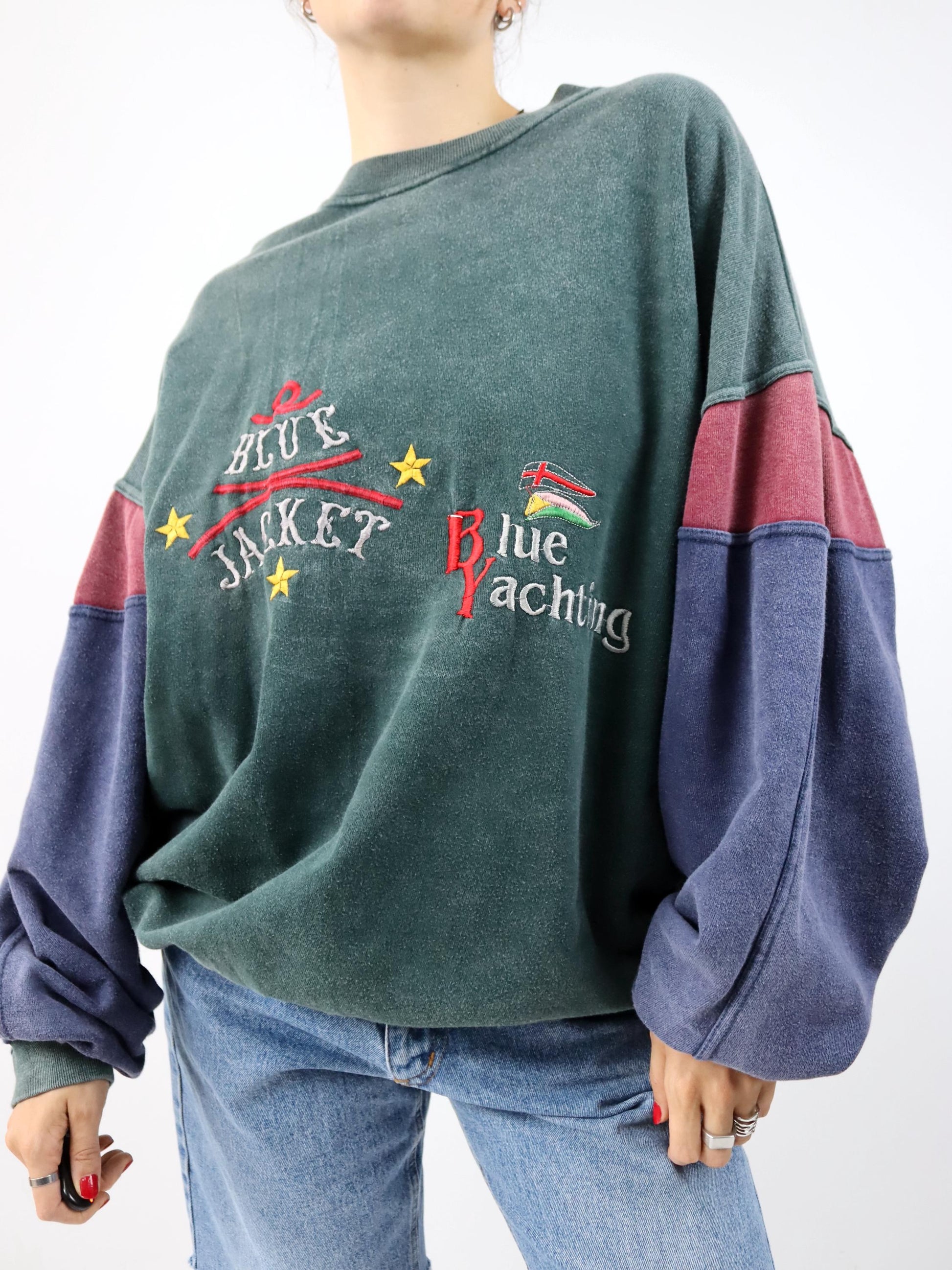 Vintage 80er 90er TEQUILA BOOM Sweatshirt Pullover Stickerei Yachting grün blau rot XXL