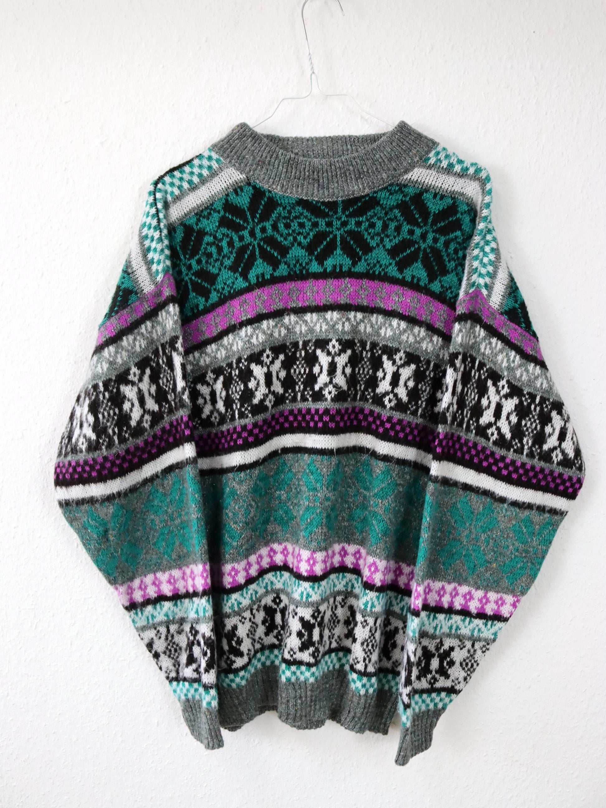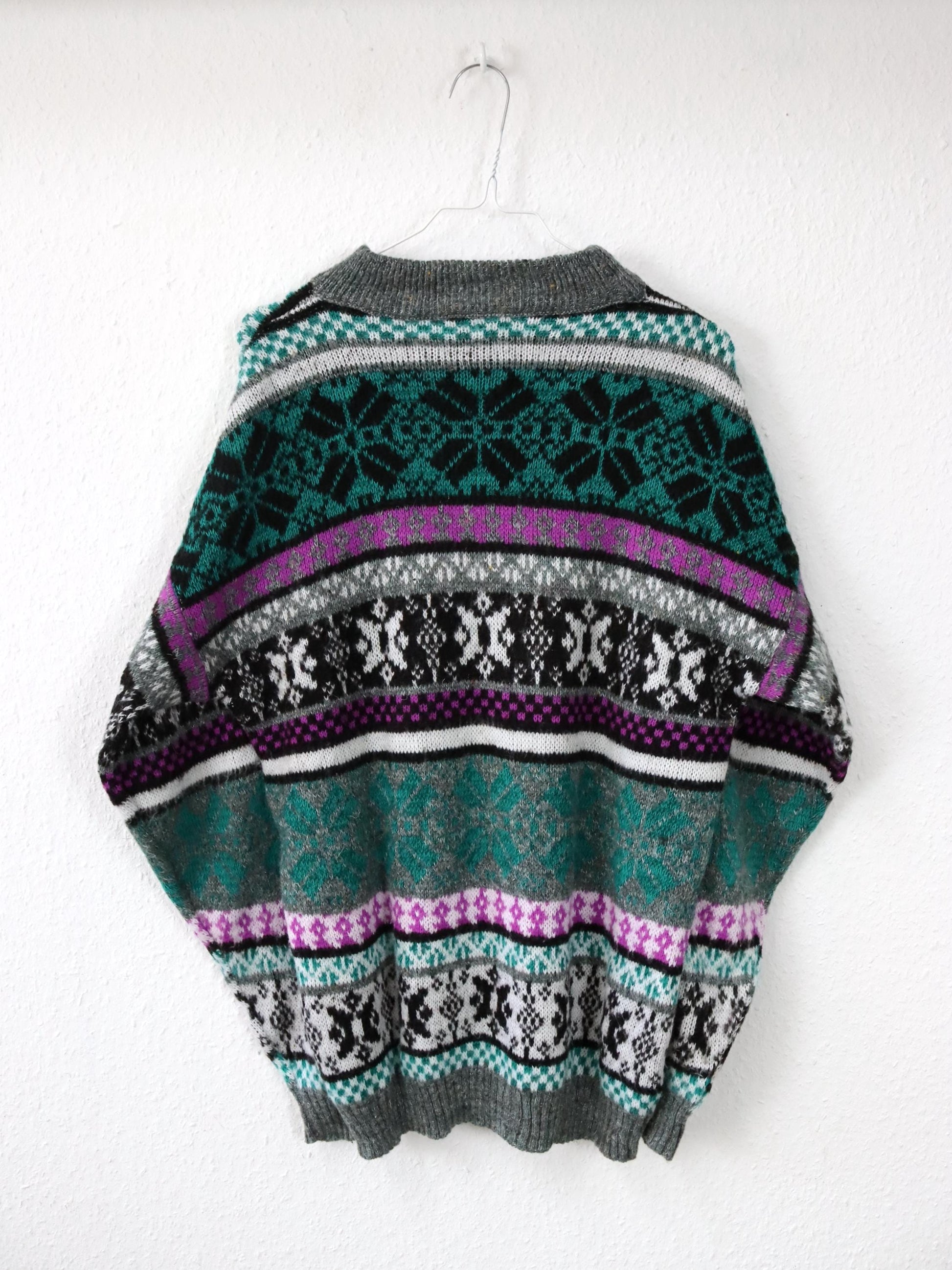 Vintage 80er 90er Wollpullover Pullover Wolle lila grün gemustert M