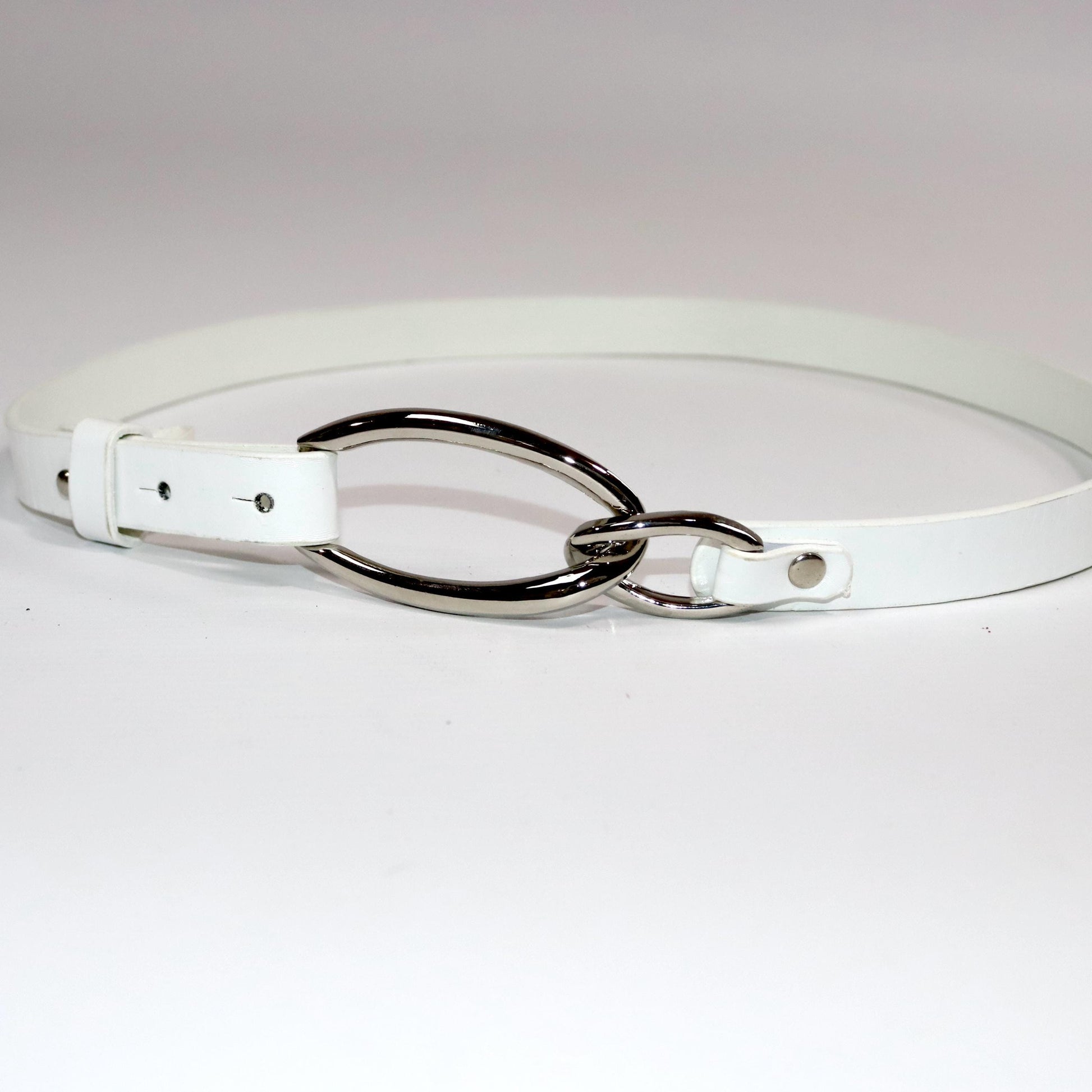 Vintage 80er 90er Y2k schmaler Gürtel silber weiß Schnalle Made in Italy 85 cm